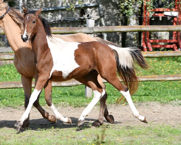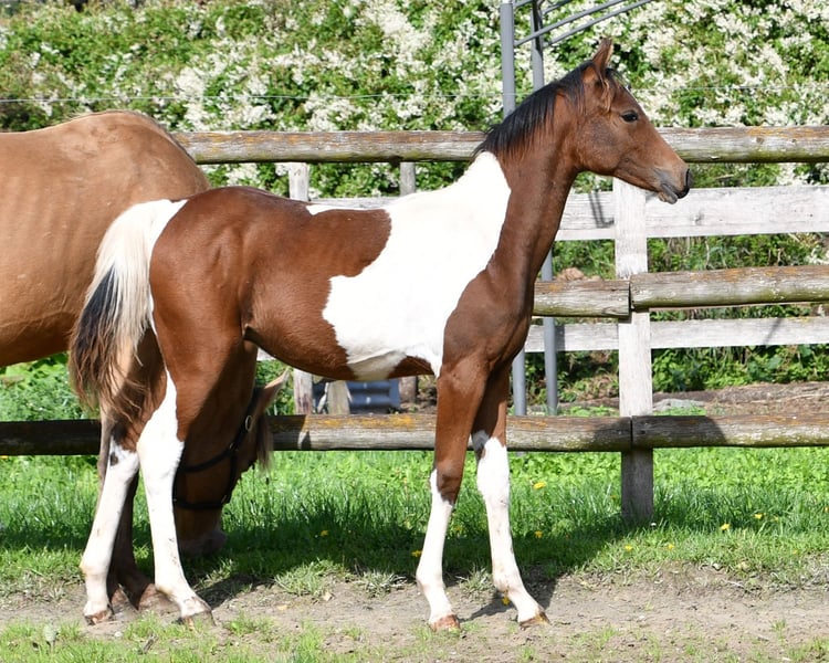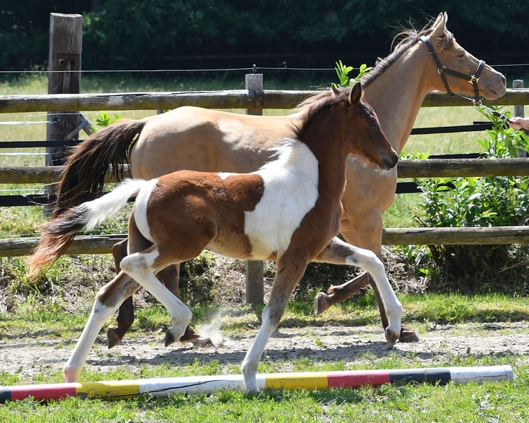 This colt is not only particularly striking in color and also incredibly beautiful, but he is also an absolute dream horse in terms of character. He is people-oriented, trusting, and easy to train, leaving no wishes unfulfilled. His mother is a premium mare and his father is even a performance stallion, and his 2-year-old full sister can also be viewed. An older full brother is even licensed. We are totally happy if the little one simply becomes a family horse, whether just for leisure or with sporting ambitions. The last pictures show the mother and father.