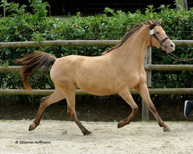 Este potro de semental no solo destaca por su coloración especial y su belleza, sino que además es un caballo con un carácter excepcional. Es muy sociable, confiado y fácil de manejar, lo que hace que no deje nada que desear. Su madre es una yegua premiada y su padre es un semental de alto rendimiento; además, se puede visitar a su hermana mayor, que tiene 2 años. Un hermano mayor, también de su misma sangre, ha sido incluso aprobado para reproducción. Sin embargo, estamos muy felices si el pequeño simplemente se convierte en un caballo familiar, ya sea solo para ocio o con aspiraciones deportivas. Las primeras fotos son recientes, de octubre de 2025, y después se muestran imágenes de Khaleo durante la inspección de conformación, donde fue altamente premiado. Las siguientes fotos lo muestran a pocos días de nacido y las últimas imágenes son de su madre y su padre.