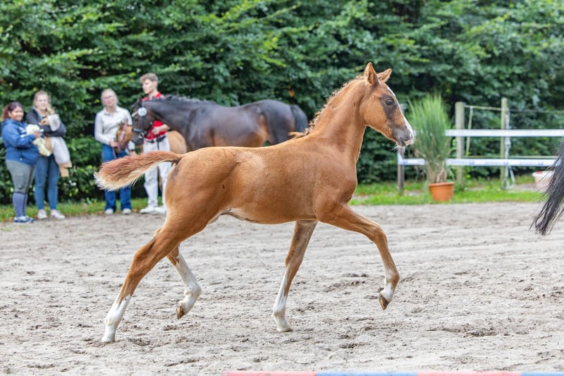 Schönes Hengstfohlen Dunkelfuchs Geb. 06.2025 Abstammung: Halifax (Gestüt Kastanienhof) Elite LH Halifax x Carry Gold x Bentley Kennt das Fohlen ABC und hat die Fohlenprämie vom Pferdestammbuch Weser Ems erhalten. Kann jederzeit besichtigt werden. Die Mutter Stute kann hier auch gerne besichtigt werden und steht auch zum Verkauf. Privatverkauf und Hobbyzucht