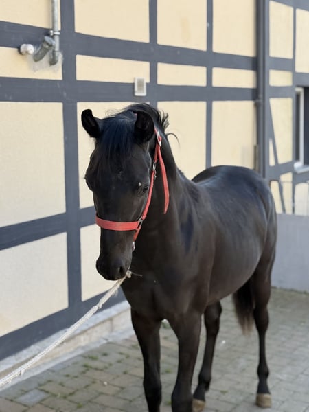 Deutsches Reitpony Hengst mit sanftem Charakter und toller Bewegung, Nashville ist sehr menschenbezogen. Er ist im Februar 2024 geboren daher noch roh, Fohlen ABC sitzt. Schmied und Anhänger fahren kennt er auch und benimmt sich dabei super. Bei Interesse gern schreiben oder unter Telefonnummer 01717707816. Videos von der Bewegung vorhanden.
