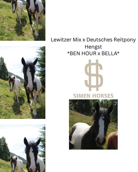 Very calm and kind stallion with a blue eye. Silver spotted. Suitable for leisure riders. Family horse. Grows up healthy on our large Black Forest pastures, in a herd. - Sturdy build - Easy to handle - Approved - Papers ZfdP Mother: Bella (Pony without pedigree) Father: Ben Hour (Lewitzer mix, see stallion advertisement) **Entering the yard and pastures of the establishment for viewings and riding of sale horses is always at your own risk! Exclusion of any warranty! For trial riding of our sale horses, we charge €50. This amount will be deducted from the purchase price of a horse.**