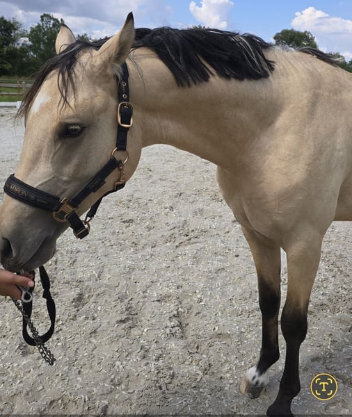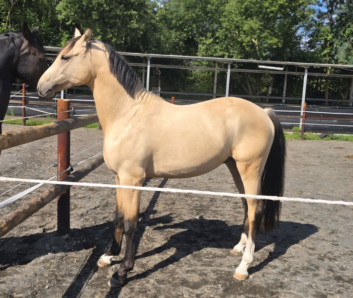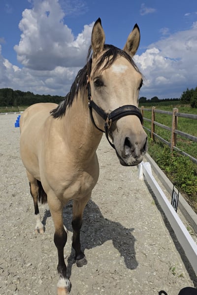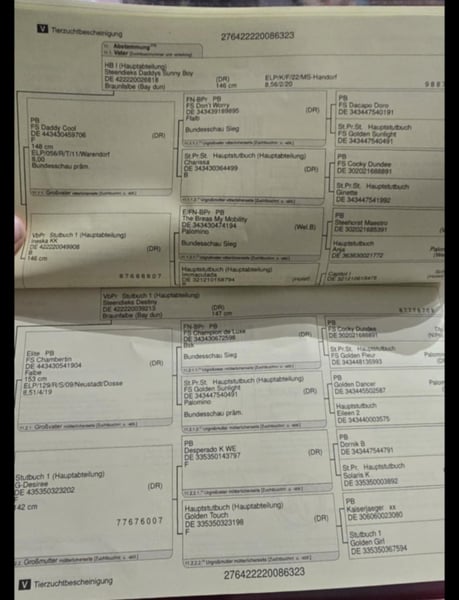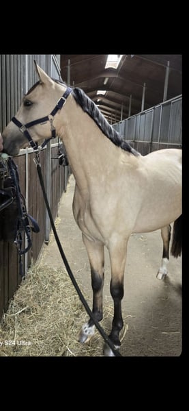 We are looking for a new home for our Divus. Divus is 2.5 years old and came to us as a weanling for rearing. He has experienced a loving, species-appropriate upbringing with the best feed and plenty of turnout. Of course, he has always been dewormed, presented to the farrier, and is vaccinated against tetanus. He knows everything and is very fearless. He is curious, very friendly, very social, and simply lovely. He has a solid foundation, is very correct, and moves well in all three basic gaits, with the walk being particularly good. In a special color and beautiful. He is age-appropriate and untrained. Perfect for self-training with an excellent pedigree. Divus can be laid down with us, and after he has fully recovered, he can move to his new home. Come by, get to know him, and fall in love. 😊 If you have any questions, feel free to message us.