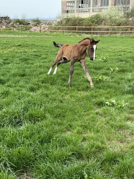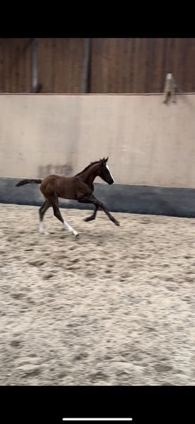 German riding pony colt looking for fostering hands. For sale is a promising German Riding Pony colt, born in 2024 (March). This elegant dark chestnut impresses with his impressive size, his height is estimated at 148 cm. His outstanding dressage qualities are his number 1 priority. His noble appearance and talent make him an ideal partner for ambitious riders. The stallion is extremely willing to learn and has excellent basic gaits, which can make him a real eye-catcher in any dressage/jumping arena. If you are looking for a young, talented dressage pony or simply a partner for life who impresses with both his looks and his performance, then this stallion is just right for you. More information about the pedigree by phone / WhatsApp. Viewing is possible by appointment. If you are interested, we look forward to hearing from you!