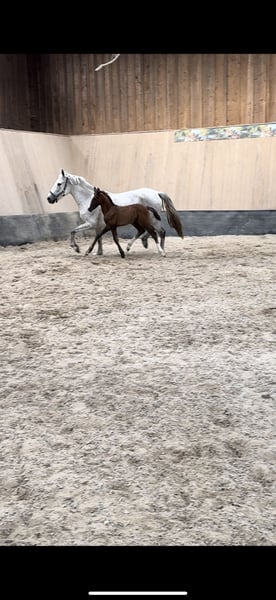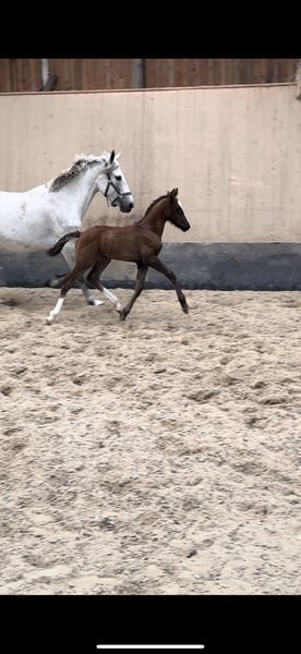 Duits rijponyveulen zoekt pleeghanden. Te koop is een veelbelovend Duits rijponyveulen, geboren in 2024 (maart). Deze elegante donkere vos maakt indruk met zijn indrukwekkende grootte, zijn schofthoogte wordt geschat op 148 cm. Zijn uitmuntende dressuurkwaliteiten zijn prioriteit nummer 1. Zijn nobele verschijning en talent maken hem een ideale partner voor ambitieuze ruiters. De hengst is zeer leergierig en heeft uitstekende basisgangen, waardoor hij een echte blikvanger kan zijn in elke dressuur- of springpiste. Als je op zoek bent naar een jonge, getalenteerde dressuurpony of gewoon een partner voor het leven die indruk maakt met zowel zijn uiterlijk als zijn prestaties, dan is deze hengst precies goed voor jou. Meer informatie over de afstamming via telefoon / WhatsApp. Bezichtiging is mogelijk op afspraak. Als je interesse hebt, horen we graag van je!