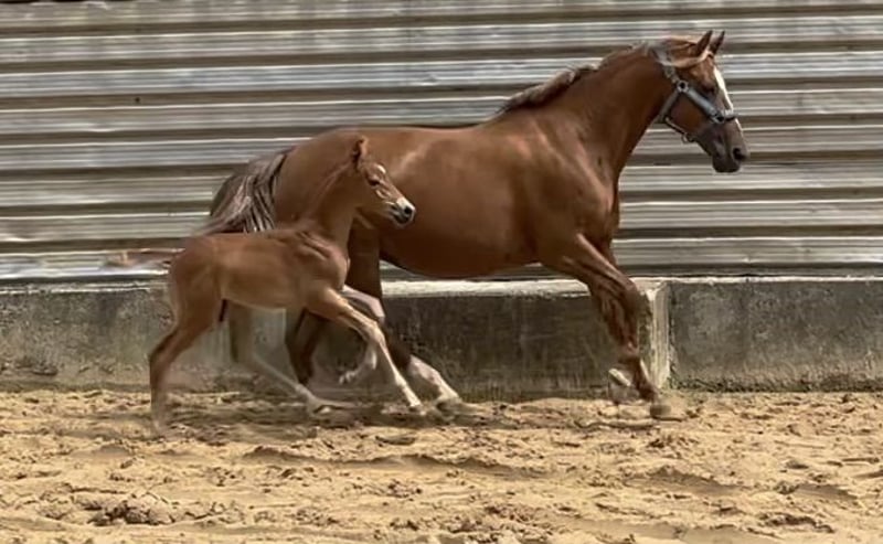 Een absolute charmeur, met een uitstekend pedigree, te koop! Prachtig veulentje, geboren op 25-04-2024, van Syriano/E.H. Gribaldi/Schwadroneur uit Fienchen van Freeman T. Porter/Maritim II. Een klein Duits rijpaard met kwaliteit, uitstraling en charme. Hij beschikt over drie zeer goede basisgangen, is erg mensgericht en heeft een hengsttypische uitstraling. De vader Syriano heeft in zijn pedigree de beste bekende hengsten en heeft zelf succesvol gesprongen op sportniveau. Daarnaast heeft hij kwalitatief zeer goede en sportief succesvolle nakomelingen! De moeder Fienchen heeft zelf in de BuCha gesprongen! Tot haar dekkingscarrière was ze met haar veulens, die ze in de sport heeft gebracht, succesvol in zowel dressuur als springarena. Een jong paard met een top pedigree en kwaliteit, dat nu op zoek is naar een mens! Video op aanvraag via WhatsApp beschikbaar! Daarnaast heeft de fokker nog meer kwalitatieve veulentjes en jonge paarden te koop!