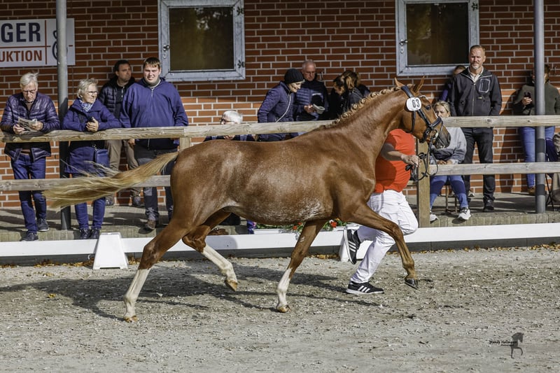 **For Sale: German Riding Pony Stallion** For sale is a promising German Riding Pony stallion, born in 2023. With his striking chestnut coat and a height of 145 cm, he is a real eye-catcher. This young stallion shows great potential in the field of dressage and is already very teachable and easy to handle. He has a pleasant, friendly nature. He is well-socialized and familiar with other horses. His basic training has already begun, and he shows a lot of joy in his work. If you are interested or have further questions, please feel free to contact me. Don’t miss this opportunity to acquire a talented partner for the future!