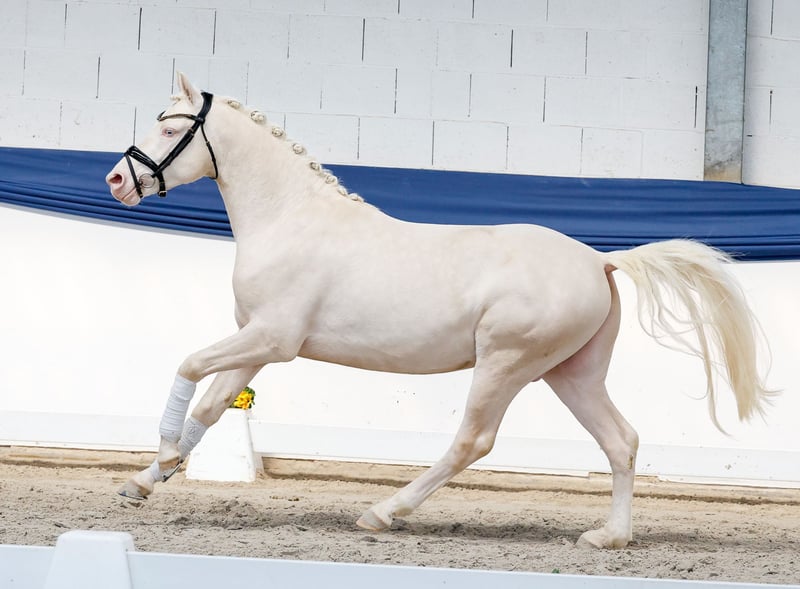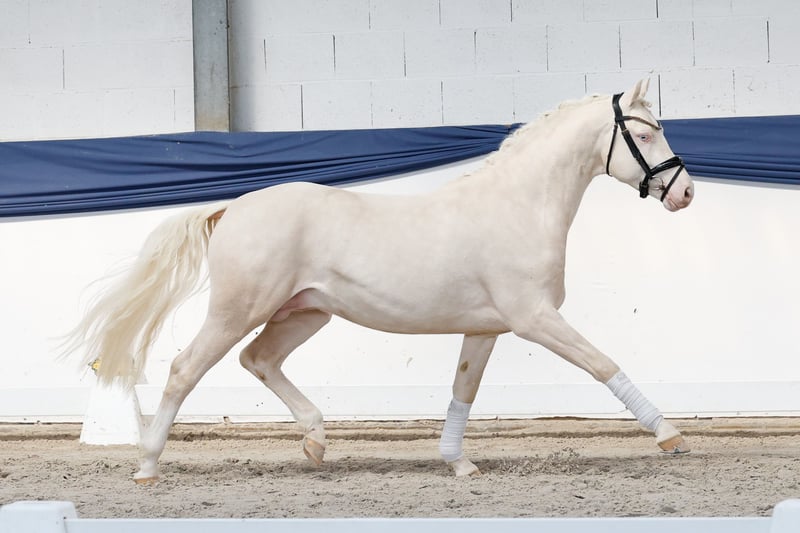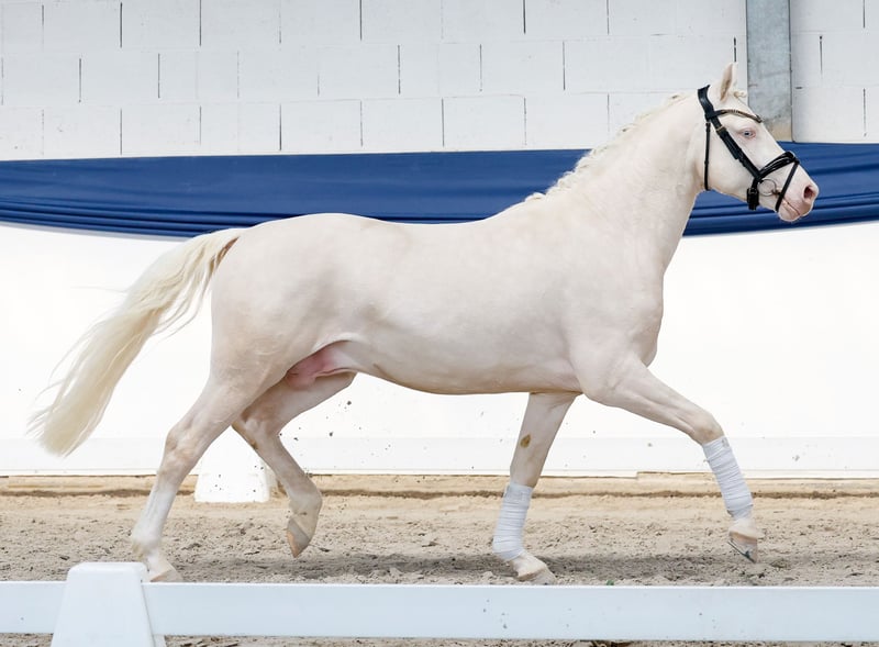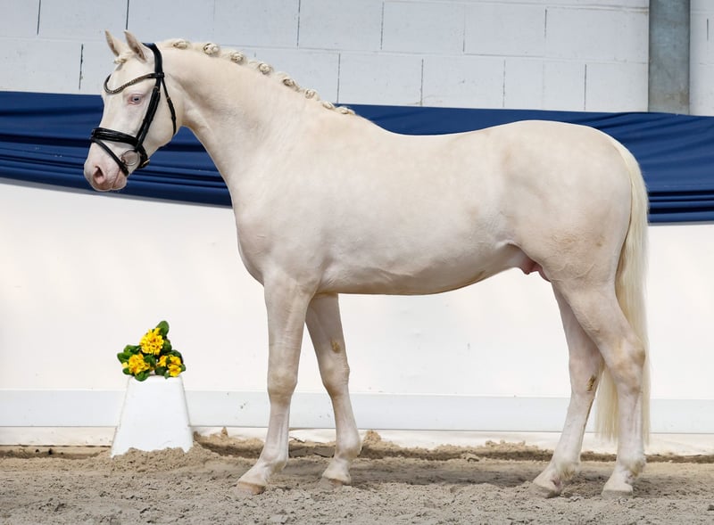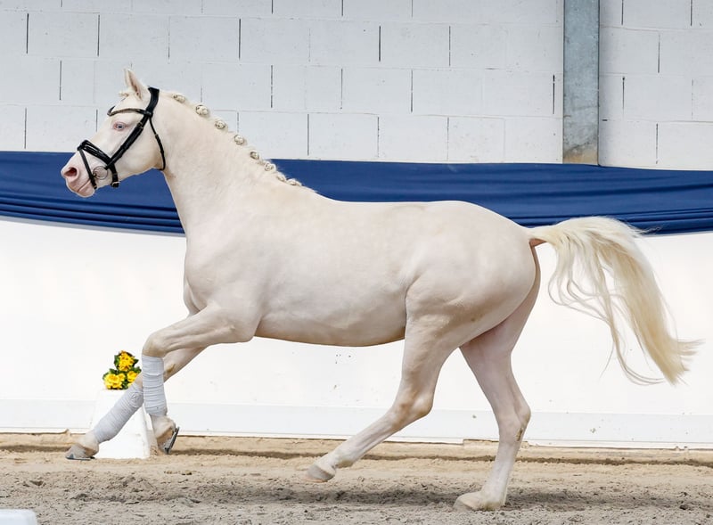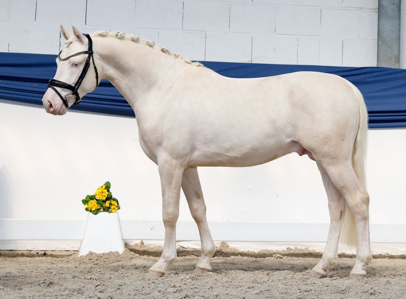 In unserer Kollektion stehen streng selektierte Youngster f�r alle Anspr�che: Ausbildungs-, Zucht- und Kinderponys Hier gelangen Sie zur Gesamtkollektion: https://ponyforum.auction Mit dem gekörten Prämienhengst Dollar Boy können wir ein sehr besonderes Pony vorstellen! Der auffällige Cremellohengst ist sowohl im Freilauf wie auch am Sprung eine Klasse für sich, federleicht im Abdruck, ganz locker und leichtfüßig. Wunderschön aufgemacht, in absolut sportlicher Aufmachung, top modern im Zuschnitt. Und wenn man jetzt noch einen Blick auf seine Ahnen wirft, versteht man die hohe Qualität des Dollar Boy in allen Bereichen sofort. Er ist ein direkter Sohn der Stute Anu, die mit ihrem Sohn Mescal bereits einen der aktuellen top Ponyhengste stellt. Mescal ist Doppelbundechampion der Springponys und startete danach im Dressurviereck durch, aktuell ist er bis zum Prix St Georg erfolgreich! Weitere Nachkommen der Mutter sind bereits im Sport hocherfolgreich. Und als Vater unseres Auktionsponys firmiert kein geringerer als der Körungssieger und Bundeschampion D-Gold AT- was für ein Pedigree! Der zukünftige Ausbilder dieses Ponys hat genug Potential für beide Sportbereiche zur Verfügung, dazu einen kopfklaren und arbeitswilligen Prämienhengst. Das kann nur gut werden! Direkt vom Züchter.