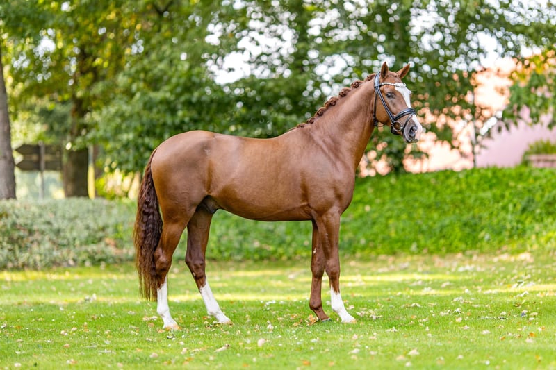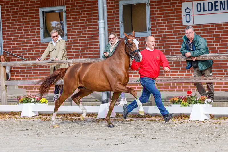 A promising, well-mannered young stallion with impressive XXL size and expressive movement. From the very beginning of his training, this colt has captivated us with his eagerness to learn and his strong work ethic. His outstanding basic qualities further set him apart. He comes from the first foal crop of the Bundessiegerstute Cosmo Genial, who herself has achieved competitive placements up to class L. His dam is the elite mare Doreena, who has already produced three state premium daughters and two licensed sons. Additionally, she has numerous sport-successful offspring. This colt boasts an excellent pedigree and is perfectly suited for further training and development by a motivated rider or breeder.