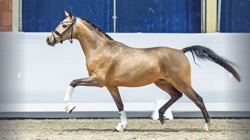 Con un carácter sobresaliente, una calidad de movimiento excelente y una presencia imponente, Demiglace logró convencer plenamente durante la licitación en Wickrath hace unos días y fue galardonado con el codiciado título de "apto para la cría". Se presenta como un potro moderno, con gran disposición para el deporte, con una clara perspectiva tanto para la competición como para la reproducción. Su padre no es otro que el excepcional semental Dating AT NRW, uno de los reproductores y deportistas más destacados y exitosos de la cría moderna de ponis. Un impresionante historial de más de 60 hijos licenciados y 45 yeguas premiadas con la medalla estatal, incluyendo numerosos sementales y yeguas ganadoras, demuestra claramente su enorme capacidad de herencia y su importancia duradera para la cría y el deporte. Su madre es la reconocida De la Candy AT, que fue galardonada con la medalla de oro ya como potranca. En su trayectoria posterior, recibió el título de yegua premiada estatal y completó su prueba de rendimiento con una puntuación sobresaliente de 8,13. Uno de los momentos culminantes de su carrera fue la final del Campeonato Federal en Warendorf en 2021, donde se destacó como finalista en la categoría de ponis de tres años, logrando un excelente sexto puesto. La abuela, Hesselteichs Candy Queen, también pertenece a la línea materna de rendimiento comprobado. Fue finalista en el Campeonato Federal de ponis de tres años en 2015, finalizando en un destacado cuarto lugar. Además, fue varias veces ganadora y colocada en concursos de doma y salto, y completó con éxito su prueba de rendimiento con una nota final de 8,4. Su notable capacidad de herencia se evidencia aún más con la producción de cinco hijos licenciados. Toda la información adicional aquí: https://auction.pferdezucht-rheinland.de/auctions/df7dab23-9e97-425e-159a-08de37f66d98/item-details/b04773b8-67da-4b2b-7ebd-08de414ebd33