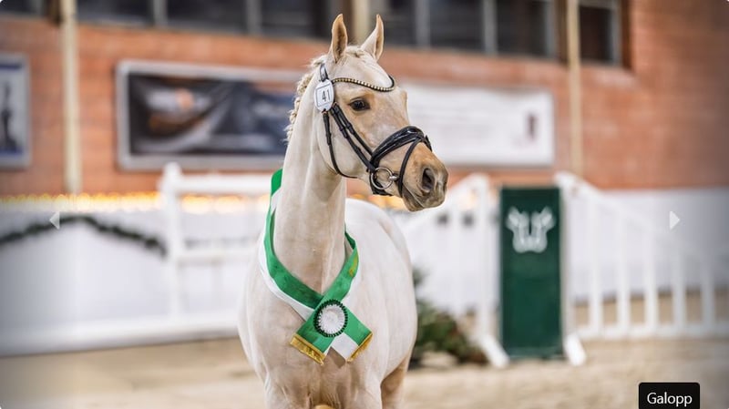 Rickhofs Glücksgriff überzeugte erst vor wenigen Tagen anlässlich der Körung in Wickrath mit seiner herausragenden Qualität und sicherte sich einen der begehrten Titel der Prämienanwartschaft. Der Hengst stammt von Golden Grey NRW, der selbst zahlreiche sportliche Top-Erfolge vorweisen kann. Golden Grey NRW wurde bei seiner Körung zum zweiten Reservesieger gekürt und konnte unter dem Sattel von Mareike Mimberg den Titel des Vize-Bundeschampions erringen. Diese sportliche und züchterische Klasse spiegelt sich eindrucksvoll in Rickhofs Glücksgefühl wider, der sich mit seiner Qualität, Ausstrahlung und Perspektive als hochinteressanter Kandidat für Zucht und Sport präsentiert.
