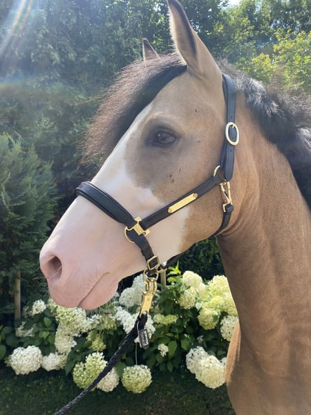 Doppelveranlagter gekörter Superstar! Zum Verkauf steht ein vielversprechender junger Deutscher Reitpony-Hengst, geboren im Jahr 2022. Im Dezember 2024 wurde Can Fly auf der Westfälischen Hauptkörung gekört. Can Fly - sein Name ist Programm. Nicht nur bildhübsch mit seiner Sonderfarbe Braunisabelfalbe (Dunskin) und seiner außergewöhnlichen Zeichnung, sondern auch mit überragenden Bewegungen ausgestattet, zieht dieser 3-jährige, gekörte Hengst, jeden in seinen Bann. Der ausdrucksstarke Hengst ist sehr gut erzogen und lässt sich problemlos auch mit Stuten in der Halle oder auf dem Außenplatz reiten. Top-Pony, auch schon von Kindern zu reiten, mit absoluter FEI-Perspektive. Bei seinem 1. Turnierstart mit einem 12 jährigen Mädchen, bei einer Reitpferdeprüfung, hat er sich vorbildlich verhalten und belegte direkt Platz 1. Aber nicht nur im Viereck, lässt dieser Hengst seine Qualität erkennen, auch beim Freispringen und bei kleineren Sprüngen unter dem Sattel zeigt er viel Talent. Mit einem Stockmaß von 148 cm ist er ideal für ambitionierte Reiter, die ein talentiertes Nachwuchspferd suchen. Sein Temperament und seine Lernbereitschaft machen ihn zu einem angenehmen Partner im täglichen Training. Er liebt es Aufmerksamkeit zu bekommen und kuschelt gerne. Wir können uns Can Fly auch sehr gut bei einem kleinen talentierten Reiter-/in vorstellen, der/die mit Unterstützung diesen besonderen Hengst zum Strahlen bringen kann. Dieser Hengst zeigt bereits jetzt vielversprechende Ansätze in der Dressur und ist bereit, weiter gefördert zu werden. Er ist gesund, gut erzogen und wartet darauf, in liebevolle und fördernde Hände abgegeben zu werden. Er lässt sich ohne Probleme in der Halle und auf dem Außenplatz mit anderen Pferden (auch Stuten) longieren oder reiten. Auch im Stall steht er zusammen mit Wallachen, Hengsten und Stuten. Can Fly macht aber nicht nur beim Reiten durch seine kooperative Art und tolle Auffassungsgabe viel Spaß, er freut sich auch über ausgiebige Putz- und Streicheleinheiten. Er ist Schmiede-/ und Verladefromm. Dieser tolle Hengst macht einfach Freude. Bei Interesse oder für weitere Informationen/Videos freuen wir uns über Ihre Kontaktaufnahme. Besichtigungen und Probereiten sind nach Absprache gerne möglich. Zusätzlich können Sie für weitere Informationen zu Can Fly die Homepage von W-Stallions besuchen. https://w-stallions.com/can-fly/ Der Hengst ist nicht das Richtige für Sie? Wir haben Ponys und Großpferde in verschiedenen Altersklassen.