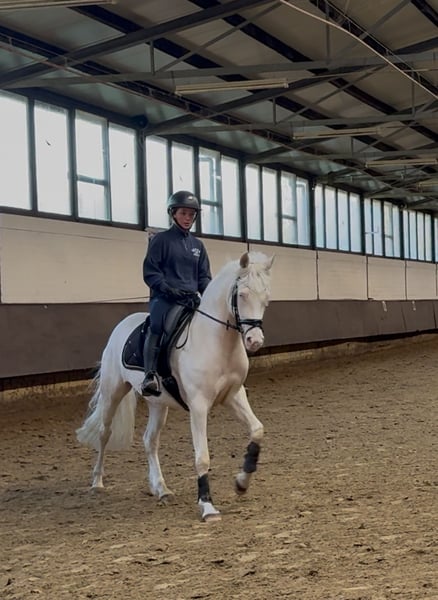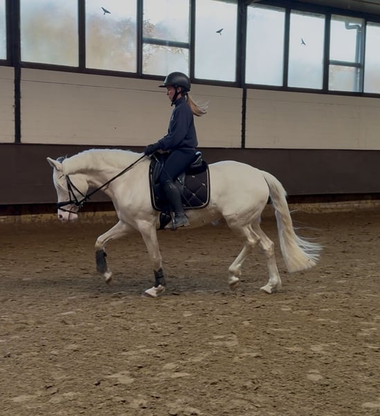 wunderschöne Perlinostute zu verkaufen mit leichtfüßig taktsicheren Ablauf einem schönen Grundschwung und absolut positiven Go Sie ist für ihr junges Alter schon top ausbalanciert und steht gut an den Hilfen. Freispringen und auch einen kleinen Sprung übers Kreuz macht sie auch super Für weitere Fragen und Video Tel. 0173-5165882