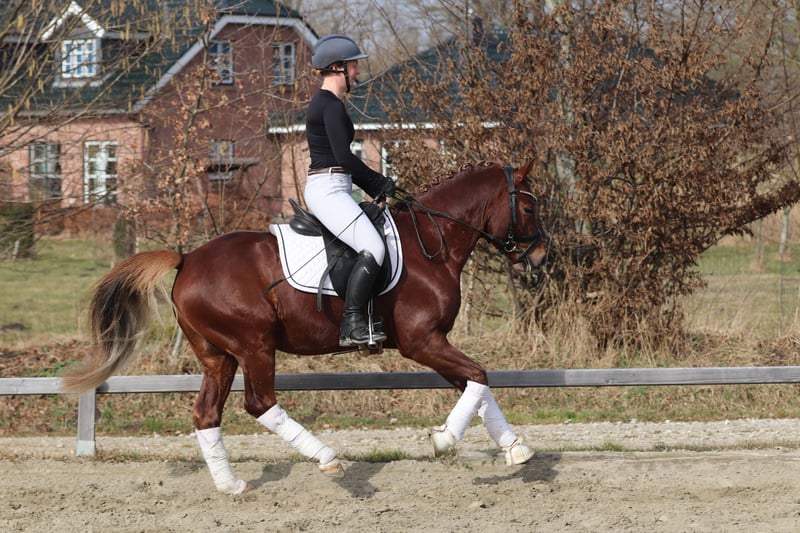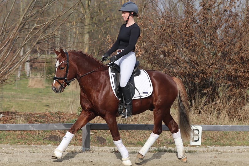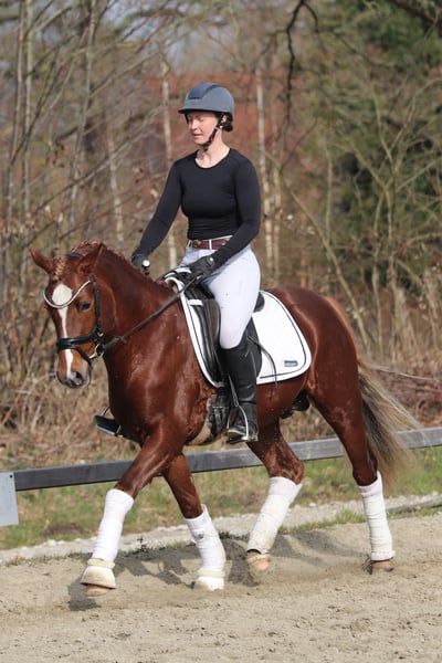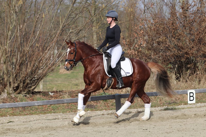 Zum Verkauf steht der sehr brave gekörte vierjährige Reitpony Hengst Springs Never Hide. Er stammt ab von Neverland WE aus einer Casino Royale K Mutter. Er wurde aktuell mit 1.41m eingemessen und somit ein Reitpony in kleinerem Maß. Er deckt allerdings sehr gut ab und kann auch von kleineren Erwachsenen gut geritten werden. Der kleine Muck zeigt sich vielseitig veranlagt. Er ist mit drei sehr guten Grundgangarten ausgestattet und zeigt sich beim Springen mit viel Übersicht und einer guten Technik. Im Februar 2025 erhielt er das Prädikat gekört. Er läuft bei uns derzeit Barhuf und ist sowohl Schmiede- als auch Verladefromm. Er wurde regelmäßig geimpft und entwurmt und war bei uns bisher nie krank. Der kleine Muck wurde letztes Jahr kurz angeritten und hat dann noch einmal den Sommer auf der Weide genossen. Seit Anfang diesen Jahres ist er jetzt wieder in Arbeit und lässt sich bereits sehr brav in der Halle und auf dem Platz auch mit anderen Pferden zusammen (auch Stuten) reiten. Dabei ist er zu jeder Zeit außergewöhnlich brav und möchte alles richtig machen. Er macht auch bereits kleine Sprünge in Folge unter dem Sattel und war auch schon kleine Stücke ausreiten. Ihn zeichnen hohe Rittigkeitswerte und seine unglaubliche Unerschrockenheit aus. In der Arbeit zeigt er sich stets motiviert, brav und sehr lernwillig. Hier wächst ein vielversprechendes Nachwuchskinderpony mit Potential in allen Sparten heran. Das Pony befindet sich auf dem richtigen Weg, muss aber noch weiter korrekt ausgebildet werden und ist deshalb nichts für reine Anfänger. Er wird allerdings bereits jetzt von einem 10jährigen Mädchen mitgeritten und macht das super brav mit. Somit kann ich ihn mir auch sehr gut für ein Mutter-Kind Gespann vorstellen. Ein gut reitendes Kind mit Unterstützung eines Trainers und regelmäßigem Beritt ist ebenfalls denkbar. Im Umgang ist er brav und sehr verschmust und genießt jede Aufmerksamkeit, die er bekommen kann. Er zeigt keinerlei Hengstunarten und lässt sich zu jederzeit gut Händeln. Er geht auch aktuell noch täglich mit einem Kumpel gemeinsam aufs Paddock und zeigt sich dabei sehr verträglich. Mit ein wenig Zeit, Geduld und Ausbildung wächst hier ein richtiges Traumkinderpony heran. Er wird im Auftrag der Züchterin verkauft und kann gerne jederzeit Probegeritten werden. Videos existieren und können bei Bedarf gerne versendet werden. Bei Fragen bitte per Nachricht oder unter 017630317998 melden.