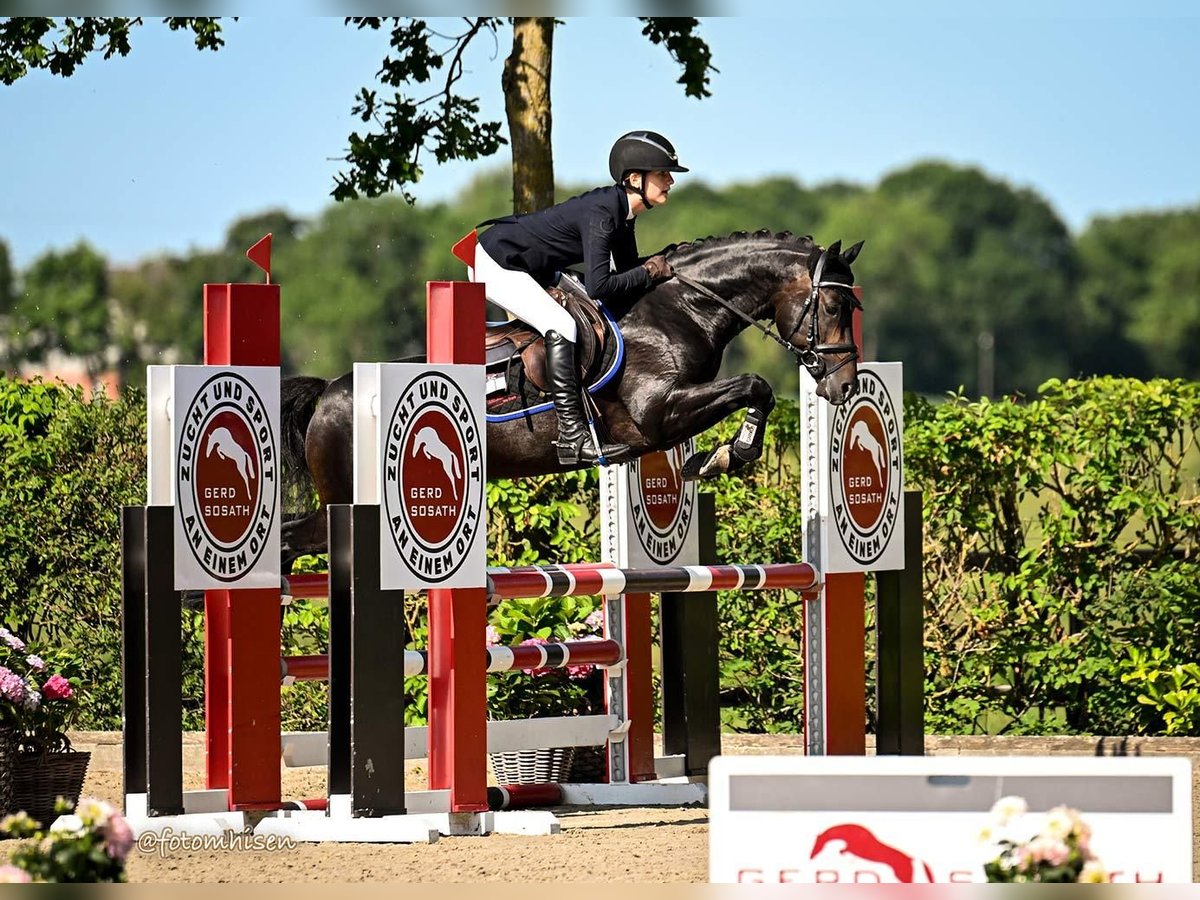 For sale is a finalist from the Bundeschampionat 2025 in Show Jumping. He is a beautiful dark brown licensed pony premium stallion, born in 2020. With a height of 147 cm, he is the ideal partner for young riders and pony lovers. This talented stallion shows great potential in show jumping and impresses with his ambitious and friendly nature. He is very well-mannered, easy to handle, and gained his first experiences in the jumping arena only in April 2025; prior to that, he competed in dressage tests. As he quickly learned show jumping in spring 2025, he was allowed to participate in several competitions in the arena, and soon after qualified for the Bundeschampionat. In Warendorf, he achieved a fantastic clear round in the final qualification with a score of 8.3. Thus, he was able to compete in the final where he finished in a great eighth place in his first L-level competition. His balanced temperament and willingness to learn make him an ideal companion for further competition in the sport. As a licensed premium stallion, he can also be perfectly utilized in breeding, where he can earn additional feed. He is healthy, regularly vaccinated, and dewormed. If you are interested and would like more information, please feel free to contact me!