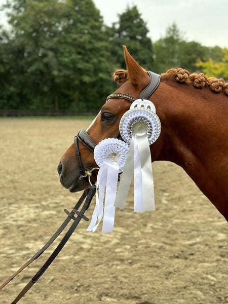 🌟 Südpfalz Diamant – a Hearthorse with Charisma, Talent, and Reliability! 🌟 Breed: German Riding Pony Gender: Stallion (licensed) Year of Birth: 2018 Height: Color: Chestnut Location: 24819 Todenbüttel ⸻ Südpfalz Diamant is a riding pony stallion that truly lives up to his name – a genuine diamond! He captivates with his stunning appearance, friendly personality, and impressive willingness to perform. ✨ Character & Training Since the age of 4, “Diamant” has been lovingly and consistently ridden and promoted by a junior rider. He consistently proves to be reliable, well-trained, and motivated – a partner you can always count on. Whether at competitions or during training at home: he always wants to please and works with a wonderful temperament. Whether in dressage, jumping, or hacking out in the fields, he is always easy and well-behaved in handling. He lives nearby my mares and foals and is always cooperative and well-mannered. ✨ Performance & Quality In 2022, he completed his 30-day stallion performance test in Neustadt/Dosse with an excellent overall score of 8.18 (4th place out of 26). His top scores speak for themselves: • Interior: 8.83 • Trot: 8.75 • Rideability: 8.50 He impresses with his strong character, relaxation, and absolute riding quality. In sport, Südpfalz Diamant has been victorious and placed multiple times up to L-level dressage, continually demonstrating his talent and composure. ✨ Pedigree & Future Prospects Sired by Diamond Touch – Der Harlekin B – Diddi Keeps Cool NRW, he combines proven performance genetics with modern riding pony elegance. Whether for dressage, high-level leisure riding, or as a valuable addition to a breeding program – this stallion is an exceptional horse with a bright future! ⸻ ❤️ Südpfalz Diamant – charming, strong character, and eager to perform. A pony that wins hearts and impresses across the board. 📹 Videos, more information, and competition records available upon request.