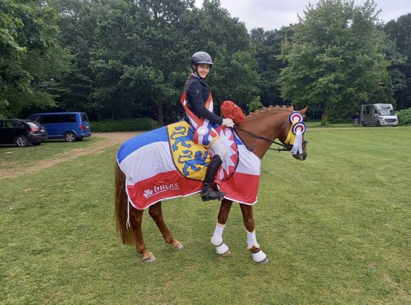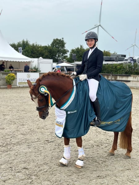 🌟 Südpfalz Diamant – een hartendief met uitstraling, talent en betrouwbaarheid! 🌟 Ras: Duits Reitpony Geslacht: Hengst (keuringswaardig) Geburtsjaar: 2018 Stockmaat: Kleur: Vos Locatie: 24819 Todenbüttel ⸻ Südpfalz Diamant is een Reitpony-hengst die echt waarmaakt wat zijn naam belooft – een ware diamant! Hij valt op door zijn prachtige verschijning, zijn vriendelijke aard en zijn indrukwekkende bereidheid tot presteren. ✨ Karakter & opleiding Sinds zijn vierde levensjaar wordt „Diamant“ liefdevol en consequent gereden en ontwikkeld door een jonge ruiter. Hij toont zich altijd betrouwbaar, goed te rijden en gemotiveerd – een partner waarop je altijd kunt rekenen. Of het nu op concours is of thuis in de training: hij wil altijd gefallen en werkt met een geweldig karakter. Of het nu in de dressuurring, tijdens het springen of tijdens een buitenrit is, hij staat hier in de directe omgeving van mijn merries en veulens en is altijd makkelijk en zachtaardig in de omgang. ✨ Prestaties & kwaliteit In 2022 heeft hij zijn 30-dagen hengstencompetitie in Neustadt/Dosse met een uitstekende totaalscore van 8,18 afgerond (4e plaats van 26). Zijn topcijfers spreken voor zich: • Interieur: 8,83 • Stap: 8,75 • Rijdbaarheid: 8,50 Hierdoor overtuigt hij door zijn sterke karakter, ontspanning en absolute rijkwaliteit. In de sport is Südpfalz Diamant succesvol en meerdere keren geplaatst tot en met L-dressuur en bewijst hij keer op keer zijn talent en zenuwsterkte. ✨ Afstamming & toekomstperspectief Afkomstig van Diamond Touch – Der Harlekin B – Diddi Keeps Cool NRW combineert hij bewezen prestatieve geneticiteit met moderne Reitpony-elegantie. Of het nu voor de dressuursport, de hogere vrijetijd of als waardevolle aanvulling voor de fokkerij is – deze hengst is een uitzonderlijk paard met een veelbelovende toekomst! ⸻ ❤️ Südpfalz Diamant – charmant, karaktervast en prestatiegericht. Een pony die harten verovert en op alle vlakken overtuigt. 📹 Video, meer informatie en concoursresultaten op aanvraag beschikbaar