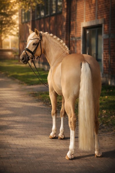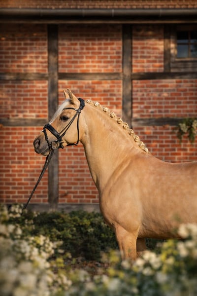 Exklusiver gekörter Prämienhengst in seltener Sonderfarbe mit Sportqualität und herausragendem Charakter. Dieser 8-jährige Hengst von Dating AT in der auffälligen Sonderfarbe Fuchsisabellfalbe vereint moderne Typausprägung, beste Rittigkeit und ein außergewöhnlich ausgeglichenes Interieur. Mit einem Stockmaß im optimalen Ponymaß präsentiert er sich als absoluter Blickfang mit gleichzeitig hoher Leistungsbereitschaft. Aus sportlicher Sicht überzeugt er durch Platzierungen in Dressurpferdeprüfungen der Klasse L sowie erste Erfolge auf M*-Niveau. Unter dem Sattel zeigt er sich leistungswillig und fein an den Hilfen – ein Pony, das seinem Reiter ein angenehmes Gefühl vermittelt. Der Reiter auf den Videos ist ca. 1,80m groß. Aufgrund seiner Qualität und seines Ausbildungsstandes bietet er eine vielversprechende Perspektive für den FEI-Sport. Besonders hervorzuheben ist sein exzellenter Charakter: Trotz Hengstmanieren ist er im täglichen Umgang ausgesprochen unkompliziert und brav. Dies spiegelt sich auch darin wider, dass er ebenso von Kindern gehandelt werden kann. Ein ideales Pony für ambitionierte Nachwuchsreiter mit gehobenen sportlichen Zielen oder für Reiter, die ein außergewöhnliches, arbeitswilliges und gleichzeitig leistungsstarkes Pony suchen. Bei Bedarf besteht zudem die Möglichkeit, ihn legen zu lassen; ein späteres Wiederantrainieren bei mir ist problemlos realisierbar. Guter TÜV, aktuelle Röntgenbilder (inklusive des Rückens) sind vorhanden und können bei ernsthaftem Interesse selbstverständlich eingesehen werden.