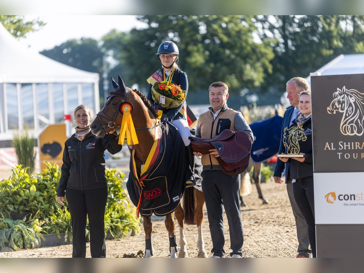 Del Drago zählt zu den herausragenden Nachwuchshengsten im Ponyspringsport und setzte bereits fünfjährig ein sportliches Ausrufezeichen auf höchstem Niveau. Als amtierender Bundeschampion der fünfjährigen deutschen Springponys rückte er nachhaltig in den Fokus von Züchtern und Fachpublikum und bestätigte eindrucksvoll sein außergewöhnliches Potenzial für den großen Sport. Im aktuellen Bundeschampionatsjahr gewann Del Drago das Finale der fünfjährigen Springponys, eine Springponyprüfung der Klasse L, mit einer Wertnote von 8,7. Bereits zuvor hatte er die Finalqualifikation für sich entschieden und bestätigte seine Topform im Finale erneut. Unter seiner Reiterin und Besitzerin Antonia Ercken überzeugte er mit ausgeprägter Übersicht am Sprung, sehr guter Körpermechanik, hoher Beweglichkeit sowie schnellen Reflexen im Vorderbein – Eigenschaften, die von den Richtern ausdrücklich hervorgehoben wurden und seine aktuelle sportliche Reife unterstreichen. Auch außerhalb des Turniergeschehens wurde seine besondere Qualität anerkannt. Im Jahr 2025 wurde Del Drago von Equitaris zum Nachwuchspony des Jahres gewählt. Diese Auszeichnung unterstreicht seine gegenwärtige Bedeutung als aufstrebender Leistungsträger im Ponyspringsport. Bereits zuvor hatte Del Drago auf sich aufmerksam gemacht. Auf der Ponykörung in Schleswig-Holstein präsentierte er sich als überragender Springsieger und begeisterte mit einem außergewöhnlichen Freispringen. Für Vermögen, Vorsicht, Flexibilität und Schnellkraft wurde er jeweils mit der Höchstnote 10,0 bewertet. Diese Bewertung verdeutlicht eindrucksvoll seine außergewöhnliche Qualität am Sprung und sein hohes Potenzial bereits als junges Pony. Gezogen wurde Del Drago auf dem Lillyhof Wacken. Sein Vater Dialo, abstammend von Diarado und Levisto, war selbst international erfolgreich bis 1,50 m unter dem Sattel von Pheline Ahlmann. Mit einem Stockmaß von 1,64 m stellte er seine sportliche Leistungsfähigkeit im internationalen Springsport eindrucksvoll unter Beweis. In der Folge bestätigte Dialo seine Klasse auch unter Jolie Marie Kühner in der internationalen Children Tour mit Erfolgen beim Preis der Besten sowie mit Einzel-Bronze und Mannschafts-Gold bei den Europameisterschaften. Die Mutter Monique, eine Tochter des Elitehengstes The Braes My Mobility, zählt zu den prägenden Stuten ihrer Linie. Sie brachte mehrere gekörte Hengste und sportlich hoch erfolgreiche Ponys hervor. Zu ihren bekanntesten Nachkommen zählen die Hengste Del Piero I und Del Piero II, die unter verschiedenen Reitern unter anderem den Titel des Deutschen Meisters erringen konnten sowie Erfolge beim Bundesnachwuchschampionat und in Nationenpreisprüfungen erzielten. Ihr Sohn Melvin ist ebenfalls gekört und bis zur Klasse M erfolgreich, ebenso wie ihre Tochter Melina, die den Titel der Vize-Bundeschampionesse gewann. Weitere sportlich erfolgreiche Nachkommen dieser Linie sind unter anderem Ghost, Maserati I und II, Mississippi sowie Mochita. Auch die Großmutter Melissa ist züchterisch hoch abgesichert. Sie stellte selbst einen gekörten Sohn und ist zudem die Großmutter von Amacho, der unter Antonia Ercken im Ponyspringsport zu den erfolgreichsten seiner Generation zählte. Zu seinen Erfolgen gehören unter anderem der Titel des Deutschen Meisters, Siege beim Preis der Besten sowie der mehrfache Gewinn der Goldmedaille bei den westfälischen Meisterschaften. Neben seiner sportlichen Qualität überzeugt Del Drago durch eine hohe Rittigkeit und Gelassenheit im täglichen Umgang. Er zeigt sich konzentriert, lernwillig und ausgeglichen, verbunden mit einem einwandfreien Charakter. Diese Eigenschaften lassen bereits früh erkennen, dass er nicht nur über herausragende sportliche Anlagen verfügt, sondern auch beste Voraussetzungen für den Einsatz unter Nachwuchsreitern mitbringt. Mit seinem Titel als amtierender Bundeschampion, der Auszeichnung als Nachwuchspony des Jahres, seiner außergewöhnlichen Freispringqualität und einer genetisch wie sportlich hochkarätig abgesicherten Abstammung präsentiert sich Del Drago als überzeugende Nachwuchshoffnung und als hochinteressanter Hengst für die leistungsorientierte Springponyzucht.