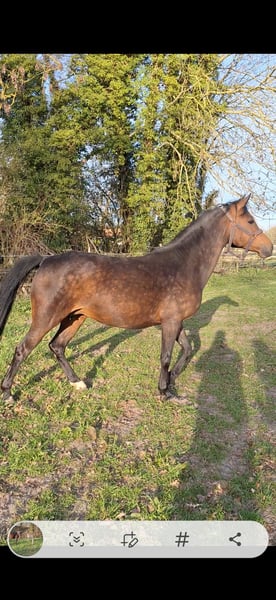 Wir bieten dieses vielversprechende Hengstfohlen mit einer Top-Abstammung zum Verkauf an: Der kleine Hengst ist am 18.März 2026 bei uns geboren und wächst nun auf unserem Bauernhof mit vielen Tieren, Hunden, Katzen, Treckern, Lkw etc im Herdenverband mit anderen Stuten und einem Wallach auf. In den kommenden Wochen wird er weiter das Fohlen-ABC lernen. Bereits jetzt lässt er sich halftern und am Strick führen. Er ist sehr menschenbezogen, aufgeschlossen, freundlich und absolut unkompliziert. Die Abstammung lässt keine Wünsche offen: Der Vater Gold Garant ist mehrfacher Champion geworden und seine Nachkommen zeigen sich hoch erfolgreich. Die Mutter , 1,48 m, stammt von Dimension AT ab, welcher für seine Bestpunkte in allen drei Grundgangarten bekannt ist und ebenso als Champion glänzte. Ebenso zeigt sich in dieser Linie immer wieder die besonders schöne Kopfform des Großvaters Ombri B (von Reese-Bornhorst), welche nun auch an dieses wunderschöne Hengstfohlen vererbt wurde. Dieser junge Mann wünscht sich ein liebes Zuhause, welches ein junges Pferd mit Potenzial, korrektem Gebäude, elastischen Bewegungen, hervorragenden Grundgangarten und einen ehrlichen Freund für`s Leben sucht. Er wird vermutlich im Endmaß bleiben. Ein Equidenpass liegt natürlich vor und der junge Mann wird im September regelmäßig entwurmt und geimpft übergeben. Der Name des Hengstfohlens darf selbst bestimmt werden - er muss lediglich mit dem Buchstaben G beginnen :-). Der Name wird dann auch so in dem Pass eingetragen. Auf den beiden letzten Fotos sind seine Eltern abgebildet:-) Über einen Besuch und ein Kennenlernen würden wir uns freuen!