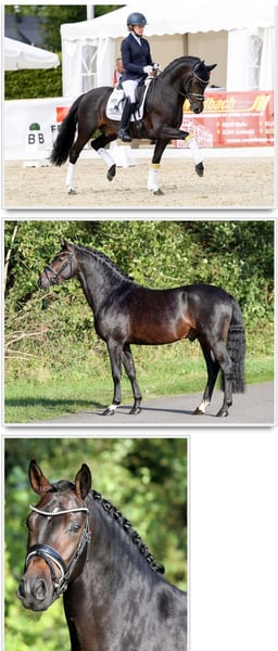 Zwickel, descendencia del especial semental Zauberlehrling. Potro macho correctamente construido, con excelentes aires básicos, premiado con un premio de potro. El padre de la madre ha tenido éxito en doma clásica en la clase S. La abuela (en la última imagen) fue exitosa en saltos hasta la clase M. Zwickel crece en una pequeña cría familiar en la costa del Báltico bajo las mejores condiciones.