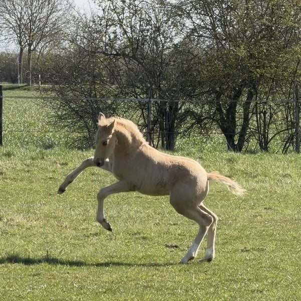 Dieser Palominohengst ist voller Freude : Hallo ich bin noch jung , aber ich bin schon recht selbstbewusst . Angst habe ich nicht - ich trabe auf dem Weg zur Weide gern vorweg ! Mit macht es soviel Spaß mich zupräsentierenn- the Show must go on - ich habe sehr viel Takt und „ Riss“ - dh ich zeige mich immer in Angebermanier - warum - weil es mir Spaß macht und ich so toll traben kann 😄😉 Aber auch mein Galopp ist sehr eindrucksvoll und immer bergauf ….. Jaaaaa ich möchte ein Hengst werden - zur Körung … Seht - schaut her - so bin ich . Da ich meinen Schwerpunkt wohl inder Dressur habe und ich überall gut sein möchte - übe ich auch schon mal das Springen …, Luftsprünge machen einfach Spaß . Zum Glück bin ich immer auf der Weide - wenn wir aus dem Stall zur Weide gehen , dann platze ich fast vor Freude . Herrlich - ich liebe das Leben . Wer mich kaufen möchte wird sicher viel Freude an mir haben und dann rocken wir das Viereck zusammen , wenn ich groß bin 🏆