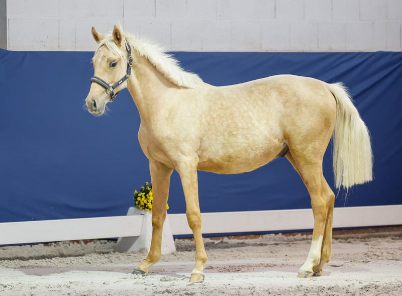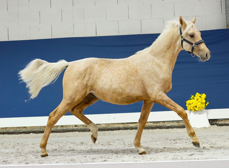 In unserer Kollektion stehen streng selektierte Youngster f�r alle Anspr�che: Ausbildungs-, Zucht- und Kinderponys Hier gelangen Sie zur Gesamtkollektion: https://ponyforum.auction Der sympathische bunte Palominohengst Deinhard Gold steht aktuell absolut in der Entwicklung. Sein Vater Damenstolz A wurde zum Körungssieger gekürt und ist aktuell unter dem Sattel erfolgreich bis zur Klasse L, er ist ein Sohn des Körungssiegers und Doppel-Bundeschampions D-Gold AT.
