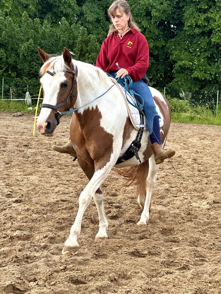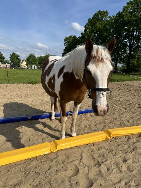Manchmal setzen die eigenen Grenzen Träumen ein Ende und manchmal dauert die Einsicht dazu eine Weile. Platz vor Preis, aber bitte trotzdem faire Angebote! Bitte keine Anfragen wegen zur Verfügung stellen oder Ratenzahlung. Bella Cara (Rufname: Cara), bei mir geboren am 27.03.2015, ca. 1,45 m groß, aufgrund ihrer herrlichen Fuchsscheckung und tollen Abstammung (FH Crack vom FS Cracker Jack (vom FS Champion de Luxe) x Allbrighton aus einer Benedict x Esperado- Mutter) auch züchterisch interessant, sucht hier sehr schweren Herzens ein neues Zuhause. Abzugeben nur aufgrund Zeitmangel und weil sie hier einfach zu kurz kommt. KEIN Notverkauf! KEINE Händler, Vermehrer oder Schulbetriebe. Sie soll weiterhin Familienmitglied sein und auf lange Zeit mit ihrer neuen Familie Abenteuer erleben und gemeinsam wachsen dürfen. Sofort raufsetzen und losreiten ist (noch) nicht möglich, aufgrund ihres Ausbildungsstandes und einer längeren Reitpause, was nur daran liegt, dass einfach keine Zeit da ist und ich alleine nicht das Können habe, was Cara zur Unterstützung braucht. Sie hat noch nie gebuckelt, ist gestiegen oder sonstiges, aber braucht einen sicheren Reiter daher auch kein Anfänger-Pferd. Ihre Halbgeschwister sind zuverlässige Freizeitpartner geworden und ihre Halbschwester hat auch ab und an Turnierstarts. Bisher wurde Cara „klassisch“ und ohne Gebiss geritten, aber auch ein Westernsattel steht ihr finde ich sehr gut. Cara ist vielfältig am Boden ausgebildet und die ersten Schritte unter dem Reiter waren auch ohne Probleme möglich (freies Reiten im Schritt, Trab und (wenn sie angeboten hat) auch im Galopp für kurze Einheiten auf dem Platz). Ich bin leider durch einen Reitunfall doch zu stark traumatisiert und daher nicht die richtige Reiterin für mein Pony, aber sie hat mich das eine Mal wo ich mich getraut habe mit sehr viel Rück- und Vorsicht getragen. Spazieren waren wir bisher immer in der Gruppe. Sie ist eine sehr feine Maus und reagiert sehr gut auf Körpersprache und auf Stimme. Schmiede- und verladefromm, geimpft, entwurmt, war hier nie ernsthaft krank. Herdenmäßig im mittleren Rang. War bisher 24/7 draußen mit einem Unterstand kennt aber auch Boxenhaltung mit tagsüber Paddock. Bitte keine Anfragen wegen zur Verfügung stellen! Dieser Schritt fällt mir schon schwer genug und wenn dann möchte ich für uns beide einen „Schlussstrich“ für immer. Sie hat jemanden verdient, der ihr die Welt zeigt, denn sie möchte einen Menschen für sich und mit dem sie die Welt entdecken kann. Auch Ratenzahlung bitte nicht anbieten, denn damit habe ich schon negative Erfahrungen gemacht und ich kann sie nicht bei mir haben in dem sicheren Wissen, dass sie am Ende der Raten auszieht. Bei Fragen gerne anschreiben.