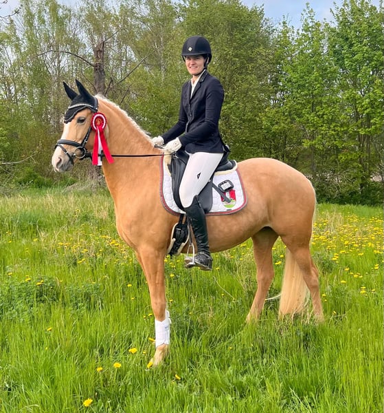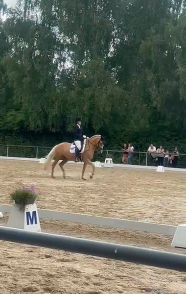 Zum Verkauf steht eine sehr elegante und ausdrucksstarke Dressurpony-Stute (Palomino) mit schwungvollen Grundgangarten und viel Präsenz im Viereck. Durch ihre besondere Ausstrahlung und ihren Bewegungsablauf fällt sie auf Turnieren sofort positiv auf. Bereits in der ersten Saison in der Klasse L konnte sie sich mehrfach platzieren und zeigt damit ihr Potenzial für den weiteren Dressursport. Besonders hervorzuheben ist ihre Nervenstärke auf Turnieren: Auch in der Prüfungssituation bleibt sie konzentriert und leistungsbereit und zeigt sich zuverlässig im Viereck. Aufgrund ihres Temperaments und ihrer Qualität eignet sie sich nicht für Anfänger, sondern ideal für ambitionierte Reiter oder Jugendliche, die ein sportliches Pony mit Perspektive für den Turniersport suchen. Weitere Informationen gerne auf Anfrage.