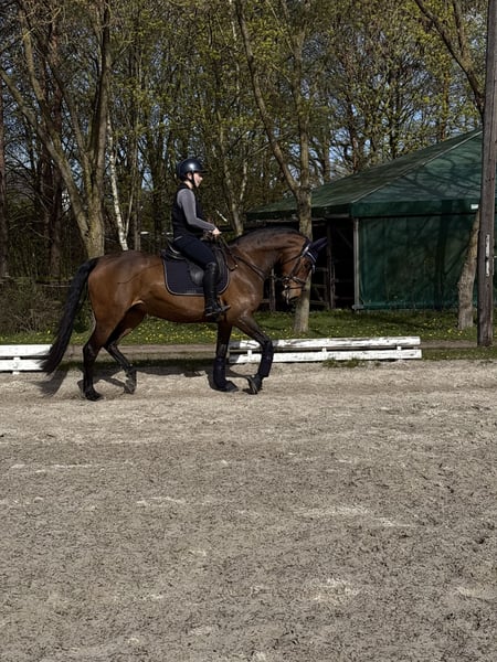 10-jährige Stute, ca. 156 cm, sucht einen neuen Möhrchengeber 🥕 Sie ist absolut brav im Umgang – putzen, Hufe geben etc. sind auch für Kinder problemlos möglich. Sehr menschenbezogen und immer händelnbar auch wenn sie sich mal erschrickt. Sie geht sicher ins Gelände, kennt Stangenarbeit und bleibt auch auf fremden Anlagen ruhig und gelassen. Sie ist bereits als Turnierpferd eingetragen. Sie steht bis jetzt im Sommer 24/7 draußen im Winter Boxenhaltung in der Nacht gewohnt. Sie ist vollständig gegen Herpes & Influenza geimpft, hat aktuell 2 Eisen vorne kann aber auch barhuf laufen. Sie wurde erst etwas später angeritten und braucht beim Reiten einen feinfühligen Reiter, der ihr Sicherheit gibt. Wenn man sich aufeinander eingespielt hat, zeigt sie sich motiviert und möchte immer mitarbeiten. Wir können sie uns gut für einen ambitionierten Freizeitreiter oder ganz entspannte Alltagsarbeit vorstellen. Kein reines Anfänger- oder Kinderpony unter dem Sattel, aber mit viel Potenzial und der richtigen Förderung ein toller Partner. Sie wird nur in beste Hände abgegeben- bitte kein letzte Preis Anfragen ❤️