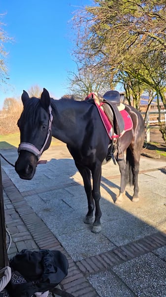 Zum Verkauf steht eine bildschöne, 10-jährige Rappstute mit einem Stockmaß von 1,60 m, die sowohl durch ihre erstklassige Abstammung als auch durch ihre Ausstrahlung, Rittigkeit und Leistungsbereitschaft überzeugt. Die Stute stammt aus bewährten und renommierten Linien, darunter Haffner, Power Boy, Don Diamond II, Casper sowie die hochgeschätzte Weltmeyer-Linie, die für Rittigkeit, Leistungsstärke und Verlässlichkeit steht. Diese Kombination macht sie nicht nur sportlich hochinteressant, sondern auch zu einer äußerst wertvollen Zuchtstute. Als Turnierpferd eingetragen, regelmäßig geimpft und barhuf, präsentiert sie sich im täglichen Umgang ausgesprochen angenehm, menschenbezogen und unkompliziert. Sie ist geländesicher und solide ausgebildet, beherrscht unter anderem Travers sowie harmonische Schritt-Galopp-Übergänge. Aktuell wird sie wieder systematisch ins Training integriert, um ihr volles Potenzial weiter auszubauen. Aufgrund Erkrankung des Besitzers ist sie sehr unverbraucht. Diese Stute vereint Adel, Substanz und Arbeitsfreude. Sie ist kein Pferd für reine Anfänger, sondern für ambitionierte Reiterinnen und Reiter mit Gefühl, die ein fein zu reitendes Pferd mit Go und Perspektive suchen. Fazit: Eine elegante, leistungsbereite und genetisch hochwertige Stute, die sowohl im Sport als auch in der Zucht neue Maßstäbe setzen kann. Bei interesse gerne melden