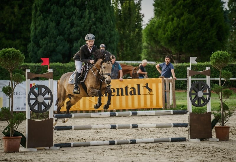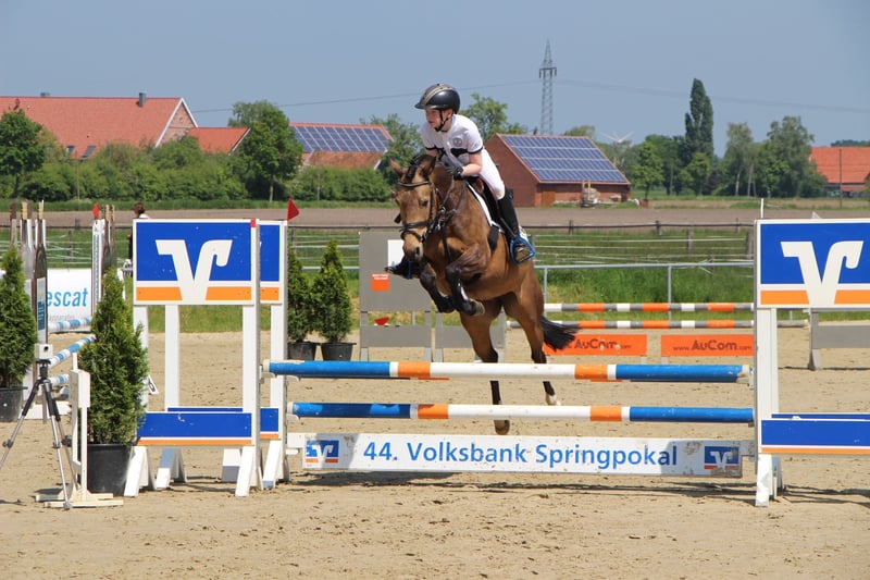 Liebes Pony mit Go, hat unsere Kinder vom Reiter-, Dressurreiter-, Springreiterwettbewerb bis hin zu Springen in der Kl. A* begleitet und platziert. 5jährig hatte sie ein Stutfohlen von Gigabyte. Da die Kinder zu groß geworden sind, müssen wir uns leider von "Grace of Glory" trennen.