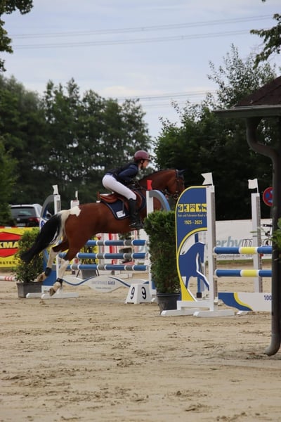 11j. 148 cm große Scheckstute zu verkaufen. A Dressur und L Springen platziert. Weitere Informationen gerne per Telefon 01722707110