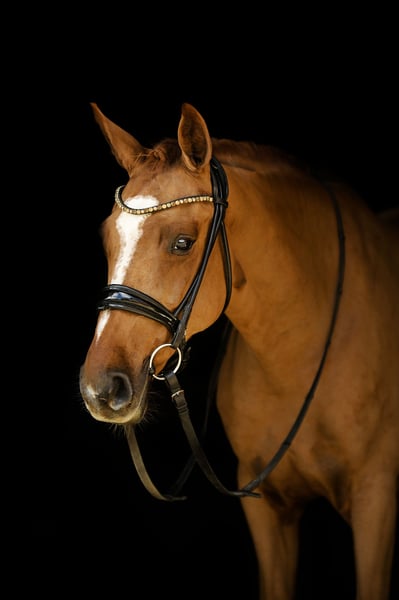 MAC Dona is well-behaved during grooming, with the farrier, and during transport. Currently working at A level in dressage and learns very quickly. She is very pleasant to ride. She has a clean X-rays