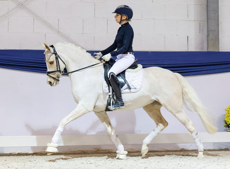 In unserer Kollektion stehen streng selektierte Reitponys f�r alle Anspr�che: Ausbildungs-, Zucht- und Kinderponys Hier gelangen Sie zur Gesamtkollektion: https://ponyforum.auction Erfolge: siegreich und platziert in Dressurprüfungen WBO, siegreich und platziert in Dressurpferdeprüfungen Klasse A und Reitpferdeprüfungen Keine Ponys unter dem Tannenbaum, natürlich nicht! Aber ganz ehrlich – die süße Gretel wäre die perfekte Ausnahme. Sie ist das perfekte Lehrpony für kleine Dressurreiterlein, die in den Leistungssport starten möchten. Gretel ist mit ihrem perfekten mittleren Rahmen im richtigen Format für die kleinen Reiter und trotzdem deckt sie einen erwachsenen (Mit)Reiter auch gut ab. Gretel wurde immer fürsorglich betreut und von Kindern unter Aufsicht geritten. Sie steht absolut sicher an den reiterlichen Hilfen und kennt das Programm von WBO-Klasse L. Ihr Vater Hesselteichs Golden Dream zählt zu den absoluten Rittigkeitsvererbern und er hat auch dieser Tochter seinen Stempel aufgedrückt. Eine hübsche und top ausgebildete Palominodame, die in der Vergangenheit bereits einer heute sehr erfolgreichen Dressurreiterin den Weg in den Turniersport ebnete!