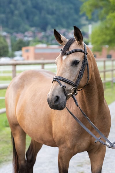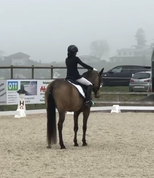 Unsere Gina ist ein rittiges, motiviertes Deutsches Reitpony mit Dressurturniererfahrung und solider Ausbildung bis Klasse L. Sie überzeugt mit sehr bequemen, schwungvollen Gängen und feiner Reaktion auf die Hilfen – dabei ist sie nicht treibig. Auch im Springen zeigt sie viel Freude, Übersicht und Ehrlichkeit am Sprung. Unarten wie Bocken oder Steigen kennt sie nicht. In der Arbeit wird sie gelegentlich etwas flott, bleibt jedoch jederzeit gut kontrollierbar. Gina wurde zudem erfolgreich in der Zucht eingesetzt und ist Mutter von drei gesunden Fohlen. Ein tolles Pony für ambitionierte Freizeitreiter oder den Turniereinsatz. Videos können auf Anfrage gerne verschickt werden.