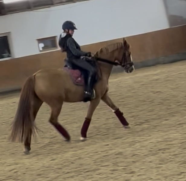 Ihr sucht ein dressurbetontes, kopfklares Pony, auf das zu jeder Zeit Verlass ist? Dann seid ihr bei unserer Lindsey genau richtig. Schweren Herzens müssen wir uns von unserer 12 jährigen Fuchsstute Lindsey trennen. Sie war unserer Tochter immer eine treue Partnerin und darf nun ein weiteres Kind, oder zierlichen Erwachsenen glücklich machen. Gemeinsam hat unsere Tochter mit Lindsey viel erlebt, angefangen bei diversen Lehrgängen (Dressur-, Spring- & Stangenlehrgang) über die ersten Turniere im Reiterwettbewerb, im Springreiterwettbewerb bis hin zur E Dressur. Aktuell lag der Fokus bei uns ganz auf der Dressurarbeit, doch Lindsey ist vielseitig veranlagt und zeigt auch im Springen viel Freude und Talent. Nicht nur außwärts konnten wir uns immer auf sie verlassen, sondern auch im Umgang sowie bei gemeinsamen Ausritten. Lindsey bleibt immer Kopfklar und passt auf ihren Reiter auf. Zusätzlich zum Training mit unserer Tochter, bekommt Lindsey professionellen Beritt. Hier sind Dressurlektionen der Klasse L sicher abrufbar. Wir suchen für Lindsey nur ein neues zu Hause, da sie leider nicht mitwächst und unsere Tochter auf ein Großpferd umsteigen wird. Röntgenbilder von 2021 ohne Befund vorhande. Bei Fragen sehr gerne melden. Gerne der erste Kontakt per WhatsApp.