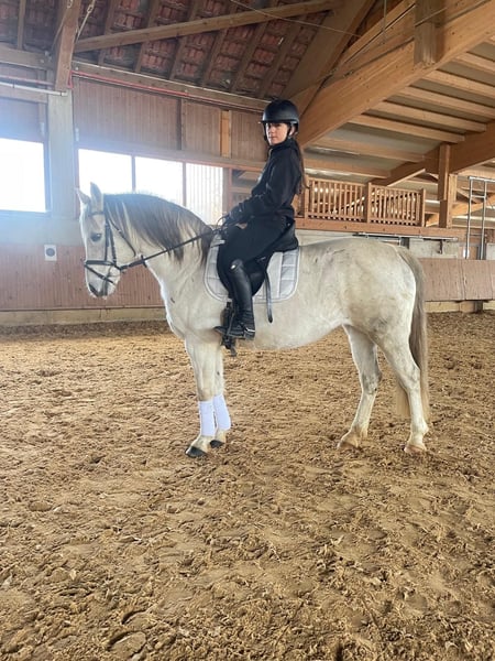 „Snapshot“ liebevoll Snappy genannt, ist eine wunderschöne 13 jährige Reitponystute von Dance Star AT x Silvertop‘s As x Nadler 1. Wer ein Kinderpony sucht, wird bei dieser süßen Maus fündig. Leicht an den Hilfen, fleißig, ehrlich und immer händelbar ob im Gelände oder in der Bahn. Absolut Schmiede-und Verladefromm ob alleine oder zu zweit. Sie kennt Offenstall oder Boxenhaltung. Sie war noch nie krank. Keine Rehe und kein Ekzem. Snappy hatte auch schon ein traumhaftes Fohlen. Ein Traum in weiß!!!!!