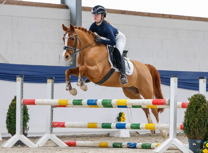 In unserer Kollektion stehen streng selektierte Reitponys f�r alle Anspr�che: Ausbildungs-, Zucht- und Kinderponys Hier gelangen Sie zur Gesamtkollektion: https://ponyforum.auction Erfolge: Staatsprämienstute, Stutenleistungsprüfung 8,2 / Freispringen 9,0 in Münster-Handorf, platziert in Springprüfungen Klasse A und WBO-Prüfungen Springponyfans werden bei dieser volljährigen Stute direkt aufmerksam. Schon die bunte Fuchsfärbung dieser Stute lässt auf ihren berühmten Vater Principal Boy schließen – sie trägt eindeutig seinen Look! Dazu ist Pascalina eine Vollschwester zum gekörten Hengst Pinocchio S.W., der seines Zeichens Parcourserfolge in der Klasse M vorweisen kann und erfolgreiche Nachkommen stellt. Pascalina selbst wurde als junge Stute zur Staatsprämienstute gekürt und sie legte mit der Endnote 8,2 eine der höchst benoteten Prüfungen des Jahres ab. Sie wurde anfangs im Springsport eingesetzt, bei ihrer Besitzerfamilie stand in den letzten 5 Jahren allerdings der Springsport nicht an erster Stelle. Pascalina war Familienmitglied und Sportpartnerin der Kinder und wurde ab und zu mal in WBO-Prüfungen eingesetzt. Das Springen liegt aber natürlich weiter im Blut und sie kann hier direkt passend eingesetzt werden! Ein tolles Sportpony für Reiter, die gerne in beiden Disziplinen des Ponysports unterwegs sind.