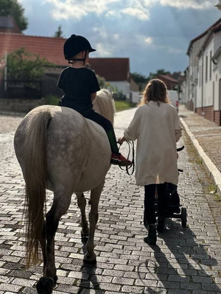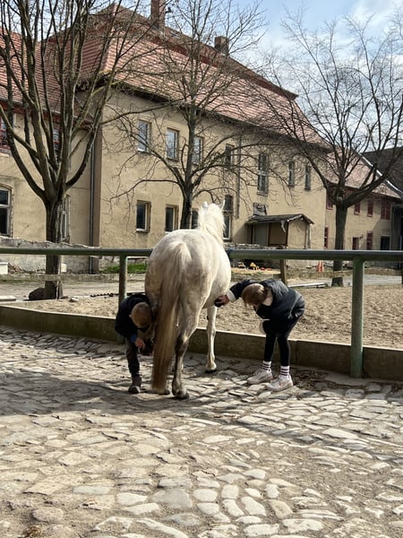 Zum Verkauf steht eine brave und zuverlässige Stute, mit einem Stockmaß von 1,33m, geboren im 06/2012. Niederländischer Pass, ohne Abstammung Sie war stets gesund, einzig ein Kieferbruch im Jahr 2017 infolge eines Weideunfalls ist bekannt und vollständig ausgeheilt. Die Stute ist sehr leichtfuttrig, barhuf und kennt Herden- und Gruppenhaltung. Im Umgang mit Artgenossen zeigt sie sich sehr sozial, findet schnell ihren Platz in der Rangordnung und verhält sich dabei stets fair. Nachts steht sie in einer Box. Sie ist absolut kinderlieb und kann von kleinen Kindern problemlos gehandelt und geritten werden. Aktuell wird sie ausschließlich von Kindern geritten. Seit 2017 wird sie gebisslos gearbeitet. Im Gelände ist sie sehr sicher, sowohl allein als auch in der Gruppe. Besonders hervorzuheben ist ihre große Routine und Gelassenheit im Trubel: Seit rund 10 Jahren ist sie zuverlässig als Martinspferd bei Umzügen direkt hinter einer Schalmeienkapelle gelaufen und nahm regelmäßig an Reitertagen teil (u. a. Führzügel, Jump & Dog). Sie lässt sich verladen, zeigt dabei jedoch Eile beim Abladen, sobald die Klappe geöffnet wird. Gesundheitsstatus: Letzte Impfung: Dezember 2025 Zähne und Wurmkur: Januar 2026 Der Verkauf erfolgt ausschließlich aus Zeit- und Auslastungsgründen, da die derzeitige Bewegung durch die Kinder für eine artgerechte Auslastung nicht mehr ausreicht. Es besteht die Möglichkeit das Pferd im aktuellen Pensionsstall weiterhin unterzubringen. Um Reittourismus vorzubeugen behalte ich mir vor, 15 € für Probereiten zu veranschlagen. Ein ideales Pferd für Familien, Kinder, Freizeit- oder Geländereiter, die ein erfahrenes, nervenstarkes und umgängliches Pferd suchen.