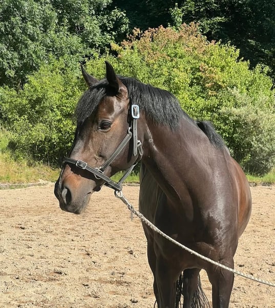 Luna, a 14-year-old mare, approximately 14.9 hands tall. Placed in Level A dressage and jumping competitions. Loadable and blacksmith-friendly. An experienced and versatile mare – ideal for ambitious riders seeking a reliable partner. Feel free to contact us for more information or videos!
