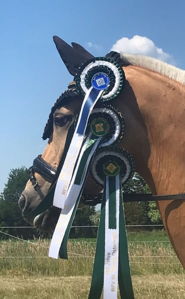Verkaufe ganz schweren Herzens unsere Ponyprinzessin. Sie ist eine deutsche Reitpony-Stute – Palomino, Geburtsjahr 2011 und wurde über den Hengst Don‘t Worry und Arts-Dancer Boy gezogen. Sie ist nicht nur optisch ein echter Hingucker, trotz ihrer Größe von 146 cm deckt sie, im Hengsttyp stehend, sehr gut ab und wir wurden oft gefragt ob sie noch im Maß ist. Unsere Mary ist eine Schleifensammlerin, eine tolle Lehrmeisterin und eine Lebensversicherung in allen Lebenslagen. Sie geht selbstständig auf Anhänger und Transporter, schläft beim Schmied und beim Scheren schon mal ganz gerne ein. Auf Turnieren weiß sie sich zu präsentieren. Sie ist siegreich L* fast ausschließlich gegen Großpferde und hoch L** platziert- hier ist sicherlich noch Potential nach oben. Sie ist L** Lektionssicherung und auch von kleineren, schwächeren Reitern gut zu Händeln, sie war u.a. Kreismeisterin und Siegerin des Volksbank Cup‘s. Mary hat ein ganz liebes Wesen und ist wirklich eine Prinzessin. Sie ist für fast jeden Blödsinn zu haben, so schwimmt sie sehr gerne, liebt Ausritte und springt gerne- dies wurde bei uns allerdings nicht weiter gefördert. Als Mitglied der Niedersächsischen Ponyquadrillie hat sie mehrfach u.a. an der Eröffnungsfeier CHIO Aachen ((auf dem heiligen Rasen), dem Hamburger Derby, der Pferd&Jagd und vielen weiteren Veranstaltungen souverän teilgenommen. Bei uns war sie nie krank und nicht einen Tag schlecht gelaunt. Wir haben keine Not sie zu verkaufen und wir geben sie nur aus unseren Händen, wenn wir ein wirklich tolles Prinzessinnen Zuhause für sie finden. Bei wirklich ernsthaftem Interesse nehmen sie bitte Kontakt per WhatsApp unter 016097233628, mit uns auf.