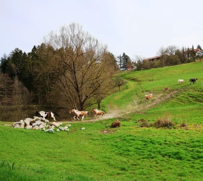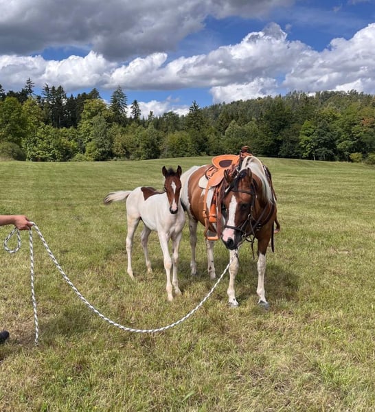 Exceptional Opportunity Sale: After careful consideration, we have decided to sell our 14-year-old Appaloosa mare "Romy" (registered as "Ramona" in her passport). *Born: 27.05.2011 Height: 14.9 hh Mother: German Riding Pony "Darinka" (chestnut) Grandmother: the successful German Riding Pony stallion - Don't Worry (chestnut) Father: Lewitzer stallion "Romeo" --> Pedigree see photos Romy is a striking German Riding Pony mare with a beautiful, distinctive brown and white coat. We have owned her since 2019. Romy is an excellent broodmare and a good mother, having effortlessly foaled four wonderful Quarter Pony foals. For this reason, we really shouldn’t sell her. However, Romy is also very well-trained and highly personable. I get the impression she wants more than just to be a broodmare. Unfortunately, we lack the time to give her the attention she deserves. It’s a pity to have such a sensitive horse ridden so rarely or worked with on the ground, which she enjoys very much. That’s why we haven’t bred her this year. Although she wears a Western saddle in the photos because it fits well, she is trained in the classical riding style. Thanks to her Lewitzer lineage, she is naturally blooded and spirited, with good gaits. You don’t need to drive her; she handles well and responds immediately to subtle aids. I ride her bitless in the terrain. Although she occasionally shares the pasture with our Grey Cattle, she can sometimes react fearfully to Fleckvieh cows in the field. This is the only minor issue I’ve observed from the beginning. With some training, this will likely diminish. Currently, she is lunging with "Finest Rocco," a Quarter Pony stallion (sire: QH "EH one of Lena's Finest," born 06.06.2025). Therefore, Romy can leave our farm no earlier than January 2026. If someone is interested in a mare with a stallion foal, that’s also possible. We could hand over both immediately. The very successful Quarter Pony stallion foal "Finest Rocco" is registered with ZSSE e.V., microchipped, dewormed, and vaccinated. This is a rare opportunity. We usually only sell young horses from our farm. Both horses require a species-appropriate new home with gentle, experienced riders. We hope both find a new place together and are willing to consider offers from 7,000 EUR. Romy individually costs 5,500 EUR VB, and Rocco 3,000 EUR. Our policy is: the more suitable the future home, the greater our willingness to negotiate. Price negotiations are only possible in person! For questions about Romy and Rocco or to arrange viewing appointments, I look forward to friendly messages...