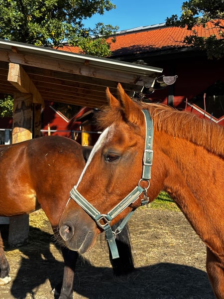Since October, the lovely German Riding Pony mare Bella (15 years old, 14.6 hh) has been enriching our horse herd. This charming mare is now ready to pack her bags and, together with her special person, explore the world. Bella is a very sweet and gentle mare, whose friendly and delicate nature quickly wins hearts. At first, she may be a little shy and needs time to build trust. Once you have won her heart, she forms a deep, trusting friendship with her handler. Bella is truly an ideal pony! She is well-mannered, cooperative, and patient in her interactions. Whether on the ground or under saddle, Bella is always soft and well-behaved, eager to do her best. She is a very willing and sensitive ride, trained up to elementary dressage level with L/M-level lateral work. However, jumping is not her forte—it causes her stress and anxiety—so we are seeking a home without jumping ambitions. Instead, Bella has other great passions: she loves long walks in the woods, enjoys water, and has even been hand-swum. She also delights in varied trail rides, obstacle courses for agility and calmness, and fine work on the lead rein. Bella is a somewhat cautious pony, occasionally tending toward nervousness. She is afraid of hectic, restless, or overly excitable people. When tacking up, she needs calmness and a slow, step-by-step approach, with lots of praise. Bella is sensitive around her ears—she particularly dislikes being touched on the left ear. This sweet mare is looking for an experienced, sensitive, and loving person who can provide her with a calm environment where she can settle in and feel secure. Her owner should also value varied activities beyond riding to keep her engaged. Bella is in excellent health, fully vaccinated, dewormed, and chipped. She is very easygoing within the herd and gets along well with both mares and geldings. She tends to be middle-ranking and would thrive in a paddock with outdoor turnout, although a night box with daily turnout would also be possible.