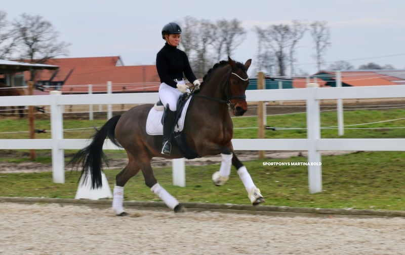 ‼️Anfragen exclusively via the telephone number below ‼️ Location: 49509 Recke | mare | DR | bay | *2010 | 147 cm | FEI passport | v. HET Golden Dream x Verdi Beautifully presented professor with a pony heart of gold! There is no other way to describe the 15-year-old "Godiva" True to her stable name "Happy", she wants to give her rider pleasure every day anew with her absolute willingness to perform, her reliability in lessons and her fearless nature. "Godiva" has a great deal of competition experience and can boast numerous wins and placings from riding competitions to L** tests with percentages of up to almost 72%. She has also been placed in medium (M) level dressage competitions, but this has not been further promoted as she has recently been used exclusively in FEI competitions. In addition to her athletic quality, she is a real treasure to handle and loves to be groomed and groomed or to go for long walks and rides in the forest. "Godiva" is suitable for beginners or for riders who want to enter FEI competitions directly. A current X-ray certificate including back pictures is available. If you are seriously interested, please call +491707941333.