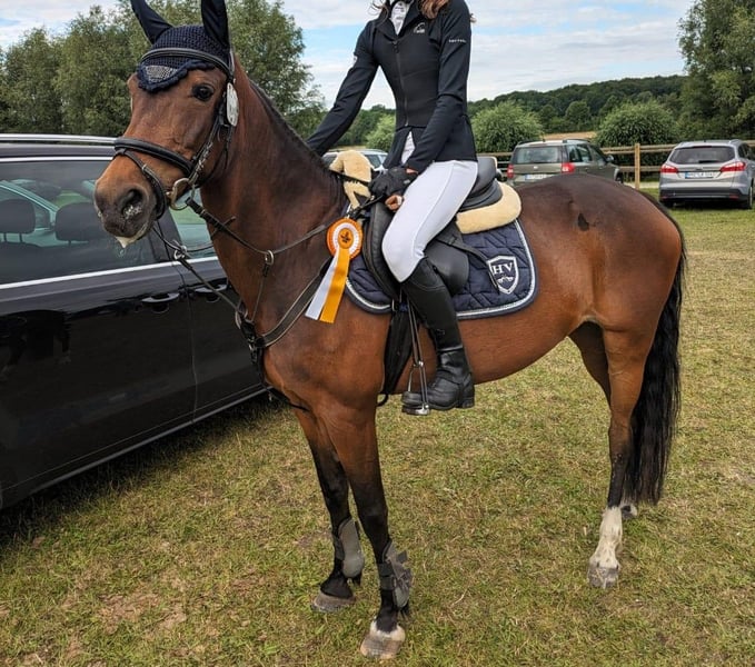 Schöne Deutsche Reitpony Stute – erfahrenes Verlasspony mit Turniererfolgen Zum Verkauf steht eine hübsche, braune Deutsche Reitpony Stute (Endmaß), geboren im Jahr 2010. Sie befindet sich seit 2014 in unserem Besitz und wurde stets liebevoll gepflegt. Aufgrund von Bestandsverkleinerung und veränderter Umstände haben wir uns schweren Herzens zu diesem Schritt entschieden. Die Stute überzeugt durch ihren einwandfreien Charakter: Sie ist absolut umgänglich, lieb im täglichen Umgang sowie schmiede- und verladefromm. Ein echtes Verlasspony, das sowohl im Umgang als auch unter dem Sattel jederzeit Freude bereitet. Sie ist turniererfahren und war besonders im Springsport zuhause. Ihr Einsatzbereich liegt hauptsächlich in der Klasse E (und A) wo sie sich als erfolgreiches Springpony bewiesen hat – Siege und vordere Platzierungen gehören zu ihrer Laufbahn. Sie steht bei uns schon länger aufgrund ihrer empfindlichen Atemwege auf Stroh-Pellets und hat aktuell keine Probleme. Eine Asthmagerechte Haltung ist allerdings unbedingt erforderlich. Dieses Pony eignet sich mit dem fortgeschrittenen Alter ideal für Einsteiger in den Turniersport oder als zuverlässiger Partner im Hobby- und Freizeitbereich. Ein echtes ❤️Pony. Wir wünschen uns für sie ein liebevolles neues Zuhause. Nur ernsthaft gemeinte Anfragen erwünscht.