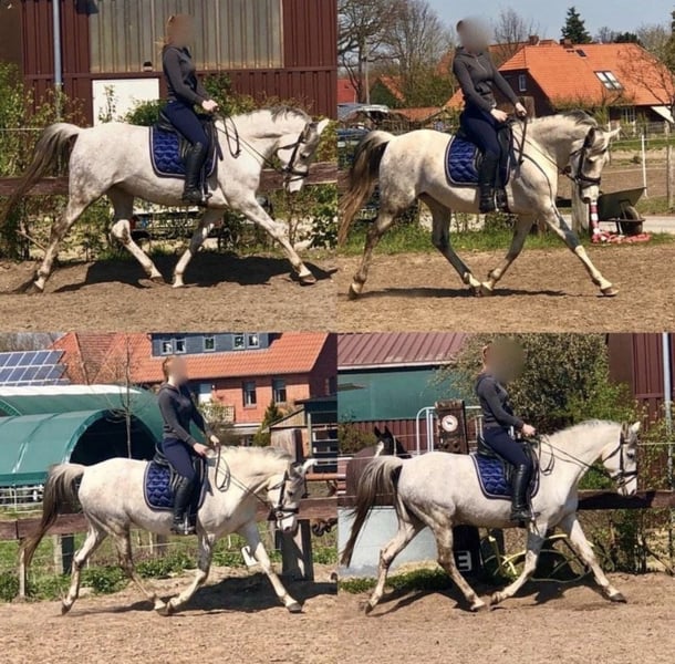 For sale is an elegant and talented German Riding Pony mare, born in 2010. She is an absolute sweetheart, very people-oriented, well-behaved, and reliable—whether with children, in the terrain, or even in equine-assisted therapy. Under saddle, she is a true all-rounder: capable in dressage and jumping up to A-level with potential for more. She is an ideal companion for families, teenagers, or adults seeking a safe and affectionate leisure pony. She has a nice forward movement and responds delicately to aids. Unfortunately, she has an allergy that manifests as mild asthma. With daily exercise and a low-dust environment, she copes very well. She receives standard hay and is familiar with both pasture turnout and stall life. If you are interested or have any further questions, please feel free to contact me. A viewing and trial ride can be arranged by appointment.
