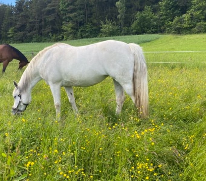 Ich suche für meine 16-jährige Deutsche Reitpony-Mix Stute ein neues, liebevolles Zuhause, da mir leider die Zeit fehlt, um ihr gerecht zu werden. Sie ist ein tolles Pony, das sowohl Jugendliche als auch Erwachsene gut abdeckt. Sie ist ein Allrounder, wird von mir allerdings nur Freizeitmäßig geritten. Sie springt mit Leidenschaft kleine Sprünge und kennt einfache Dressurarbeit, dies wurde von mir aber in den letzten Jahren nicht weiter gefördert. Sie liebt lange Ausritte alleine oder in der Gruppe. Auch vom Boden lässt sie sich gut arbeiten. Longieren und auch Doppellonge macht sie gerne. Auch beim Schmied ist sie problemlos.
