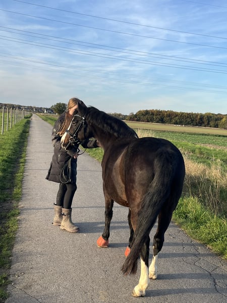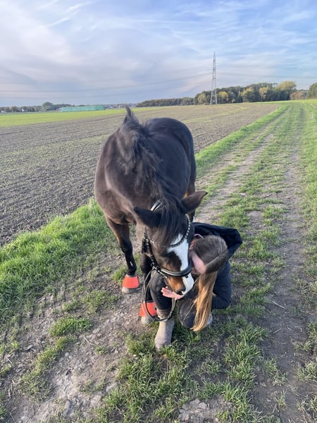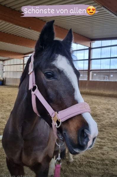 Unsere Ponystute Victoria sucht ein neues Zuhause, da sie bei uns einfach zu kurz kommt. Sie ist ein echtes Kinderpony. Passt auf ihre Reiter auf und steht brav am Anbinder zum putzen und kuscheln. Vicy ist seit 5,5 Jahren bei uns und war immer ein sehr unkompliziertes Pony. Leider hatte sie im August 2024 einen Fesselträgerschaden, der mit viel Ruhe jetzt ausgeheilt ist. Dennoch sollte sie nicht mehr gesprungen werden, keine Turniere mehr gehen und nicht mit über 40 kg belastet werden. Sie ist optimal als erstes Pony für Reitanfänger. Meine Tochter war 8 als wir sie bekommen haben und es war das beste erste Pony, was man sich vorstellen kann. Auch als Pony für therapeutisches Reiten könnte ich sie mir gut vorstellen. Sie ist bei uns tagsüber auf paddock/ Wiese (prophylaktisch mit Fressbremse) Nachts in der Box. Sie ist leichtfuttrig und benötigt nur Mineralfutter und Heu. Bisher keine Rehe oder Ekzem. Bei Interesse können wir gern telefonieren. Keine Händler! Dieses Pony geht nur in ein schönes Zuhause! Wir haben keine Eile.