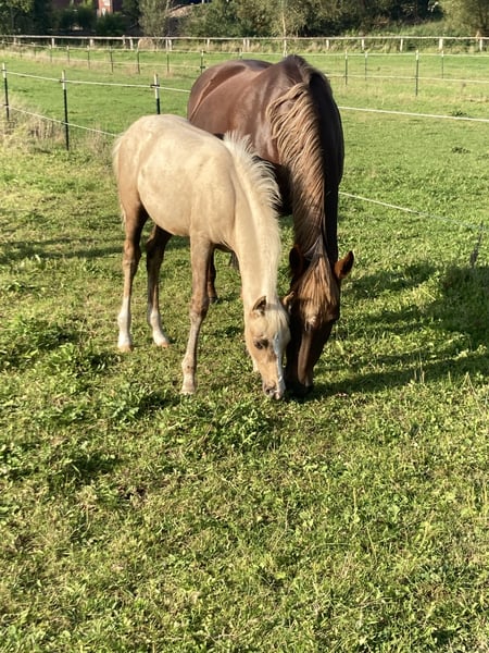 Wir verkaufen unsere 19jährige yzauberhafte Ponystute Starlights Beauty bei uns liebevoll Püppi genannt. Sie ist 1,44m, hatte 2023 ein Fohlen und ist ein Verlasspony mit der eindeutigen Vorliebe fürs Gelände. Sie gehört uns privat, läuft seit 2020 bei uns im Schulbetrieb. Nun möchten wir sie aber in private Hände geben wo sie die Aufmerksamkeit bekommt, die sie verdient, denn sie ist eine Seele von Pony. Sie muss vorne beschlagen werden, aufgrund von „Plattfüßen“. Röntgenbilder vom Sommer liegen vor, ebenso des linken Knies und Sprunggelenkes. Erste Jahreshälfte 2025 chiropraktisch und osteopatisch durchgecheckt, Zähne würden auch im ersten Quartal 2025 gemacht. Püppi kennt Offenstall und Box, legt sich nachts gerne in der Box oder im Unterstand hin. Sie mag keinen engen Kontakt zu anderen Pferden, da legt sie die Ohren an und kickt teilweise. Das ist auch der einzige Grund des Verkaufs: alleine auf dem Platz ist sie ein Traum. Mit 3-4 Pferden durcheinander geritten wird sie gestresst. Sie ist eher ranghoch. Aktuell ist unser neuer Noriker Chef der Herde und gibt ihr Sicherheit. Auch unsere 2jährigen sind kein Problem. Keine Rehe oder Ekzem. Laut Tierarzt ist ihr Rücken für 19 Jahre sehr gut und ihre Gelenke ebenso. Muss natürlich weiter trainiert werden. Gerne möchte ich sie an einen Erwachsene abgeben wo reiten nicht im Vordergrund steht, sondern das Pony, denn sie verdient ihren Herzensmenschen, nachdem sie so vielen Kindern das Reiten beigebracht hat. Um ihr Reittourismus zu ersparen, bitte ich um eine kurze Vorstellung bei Kontaktaufnahme: Alter und kurze Vorstellung der eigenen Person, was hat man mit dem Pony vor, wo und wie würde sie wohnen. Sie ist ein kräftiges Pony, aber kein Gewichtsträger, der mal eben 70kg plus Equipment schafft mit einem unsusbalancierten Reiter Bei Fragen gerne melden.