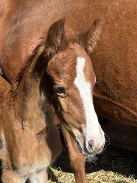 Verkaufe oder tausche mein wunderschönes Stutfohlen von Noble Dance. Das kleine Fuchsfohlen ist im April 2025 geboren und entwickelt sich prächtig: • Endmaß ca. 1,45-1,49m erwartet • Absolut korrekt auf den Beinen • Gesund und wächst im Herdenverband auf • Täglich in der Hand und frisch entwurmt • Bayerisch eingetragen Die Kleine hat eine wunderschöne weiße Blesse und zeigt sich sehr ausgeglichen im Umgang. Wenn gewünscht, kann sie auch hier zur weiteren Aufzucht bleiben. Keine aktuellen Videos da im Winterplüsch und nicht ansehnlich :-) Bei Interesse melde dich gerne bei mir. Verkauf ohne Garantie, Gewährleistung oder Rücknahme. Eventuell würden wir eine Welsh Stute o Reitpony stute suchen mit vollen Papier ?